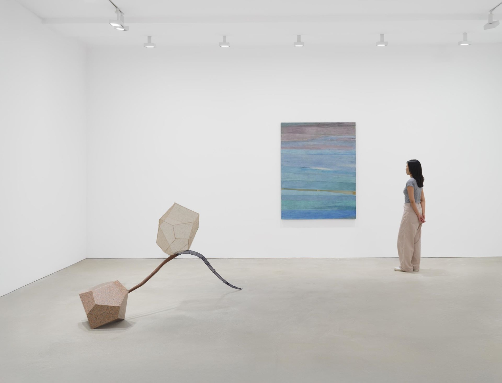 中國當代藝術家胡曉媛為本次展覽所呈現的新作,使用木料、大理石與綃等自然與有機材質,捕捉時間的無常與脆弱,讓界線不再固化,而是張力的共存。《心皮 Ⅲ》採以幾何與有機造型共築,呈現輕重、虛實、身體與情緒之間的流動,體現她對人性的細膩體察及哲學思辨。而謝南星的《明信片》系列作品係透過在層疊的畫布上創作,致使底層畫布僅留有細碎星點般的滲透痕跡,這種難以預期、不甚完整的結果最終則成為作品的主體;藉由呈現表象之下的狀態,以抗拒制式的觀察視角與解讀。