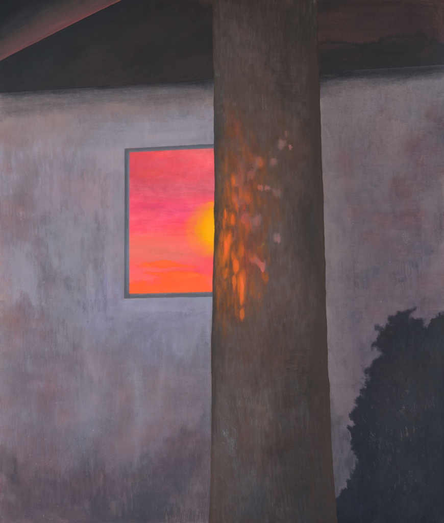 曾赴德國杜塞道夫求學的泰國藝術家普拉・皮亞斯塔普恩(Prae Pupityastaporn),擅於從生活中看似尋常的情境汲取靈感,建構穿梭於現實與虛幻之間的物質世界,揉合個人與大眾的視覺經驗對風景畫進行重新詮釋,並從而確立一種獨特的疏離閾限之創作風格。正如現場展出的《後室》畫面靜謐平和、卻也隱然透出詭譎的自然與人造景觀片段。而在倫敦進修的泰國藝術家詹姆斯・帕派彤(James Parapeton)於展場呈現的作品,係創作於疫情期間不便外出而自室內望向戶外的情景,傳遞出身心都與外界形成隔閡的幽微狀態,也是當代大眾共有的生命經驗;此外,他有一項鮮明的創作特色即為在畫布表層刷上兔皮膠而呈現朦朧的視覺效果。兩人均將自然與記憶重新提取、編織為流動的地景,消弭物我的邊界化為心靈風景。
