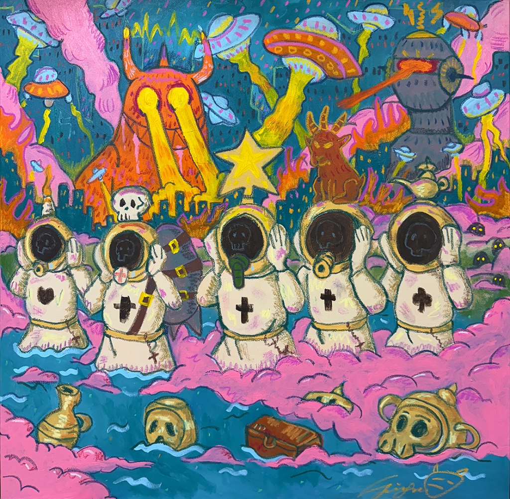從浮世繪到手塚治虫(Tezuka Osamu),漫畫已成為一種全球性的視覺語言,影響著當代藝術的各個領域。本次展覽透過來自世界各地的藝術家作品,探討漫畫如何超越文化疆界,成為跨媒體創作的重要元素。這些藝術家以各自的方式延續漫畫的敘事傳統,不論是亞歷克斯.費斯(Alex Face)的街頭角色、黃柏勳的數位敘事、林俊良的懷舊畫面,還是蓋瑞.亞默(Gary Armer)的畫面張力,他們的作品共同構築了一種新的視覺語彙,展覽邀請觀者重新審視漫畫的藝術價值,並思考漫畫如何在全球文化交流的過程中,持續演變並影響未來的視覺藝術發展。