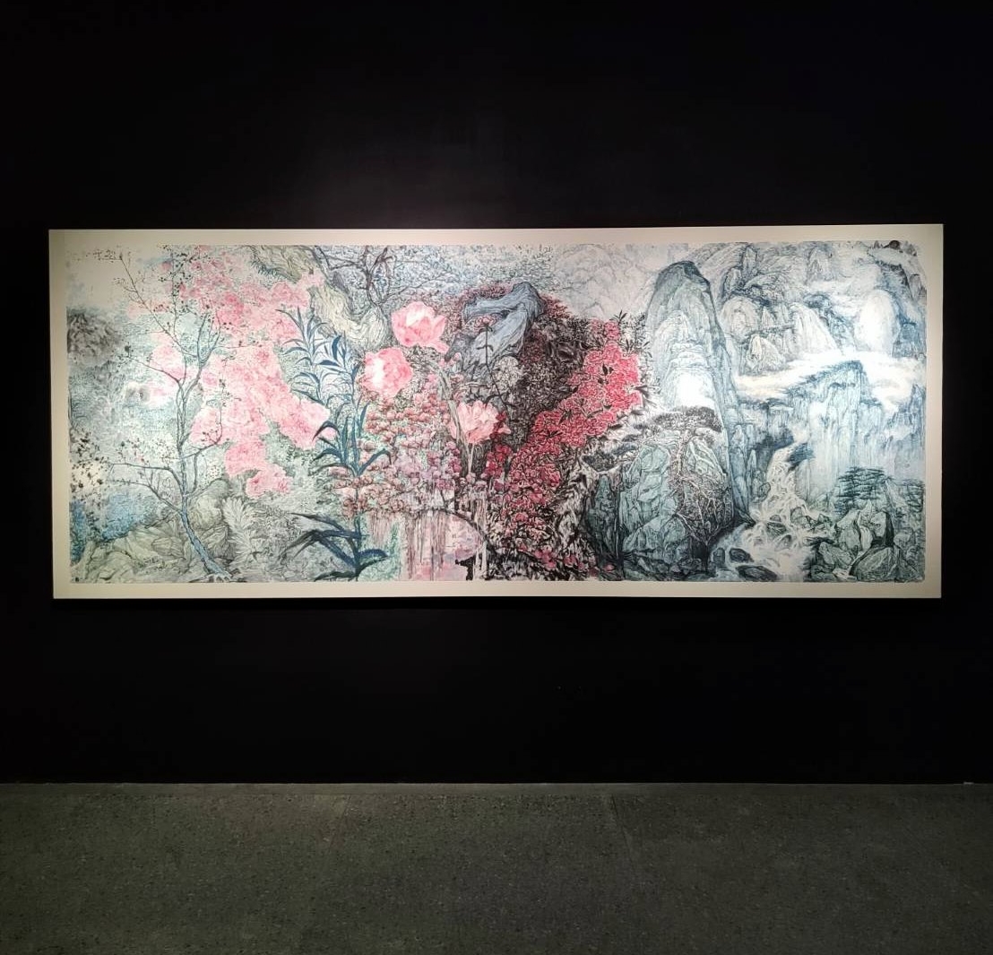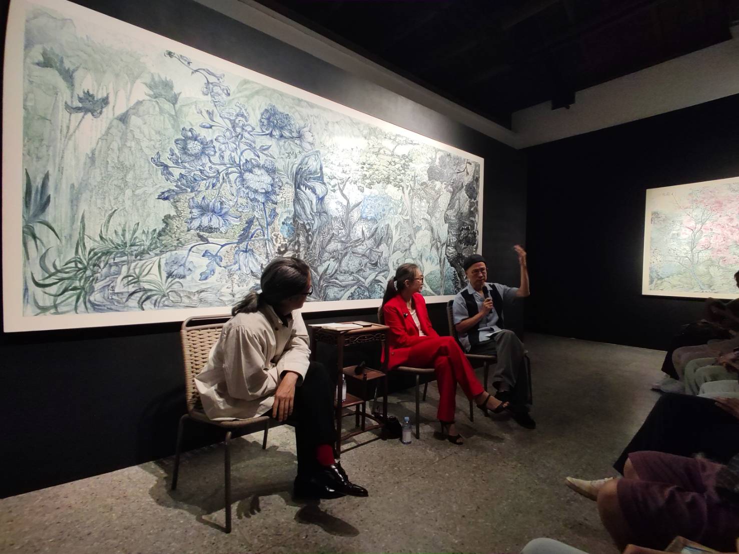 臺北大院子當代水墨「彭康隆:觀花匪禁」個展,已於週六(18日)在墨齋聯合創辦人余國樑、中央研究院藝術史工作者賴毓芝、小說家暨藝術評論人阮慶岳的精彩對談之下盛大開展,其中北京墨齋聯合創辦人余國樑定義「展演」之構成要件為「時間與空間」的運用,如同筆墨作品,在鑑賞時視線隨著橫幅紙張、卷軸推移的過程。他同時強調繪畫中的音樂性,認為彭康隆的書畫不僅可以與中國古琴相伴,其盛大壯偉與細微寧謐間雜共存,更可以與馬勒《第五號交響曲》以及西洋浪漫主義運動相呼應,在展間播放,樂音悠揚,他繼續分享在看見彭康隆的書畫後,自己對於馬勒的交響樂有了新一層的理解與共鳴。