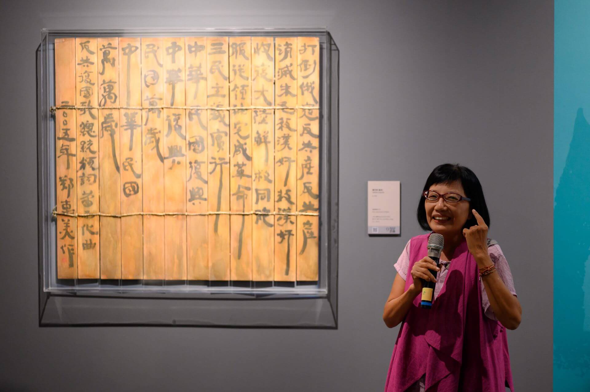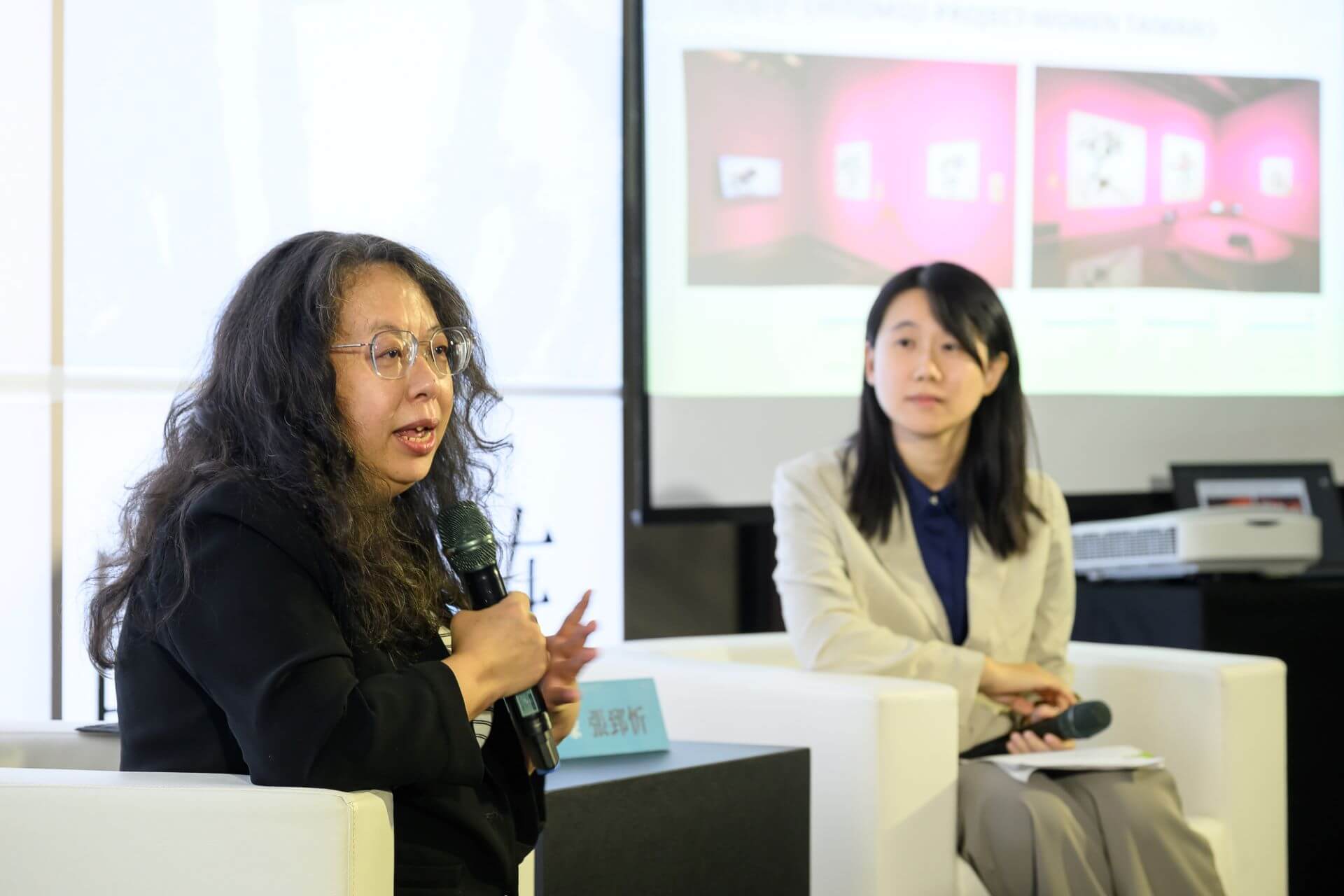 壓軸場「寫她的詩」於11月15日登場,以文學的角度切入臺灣當代女性書法藝術,邀請作家張亦絢現場與談,並由桃園市立美術館教育推廣組組長暨作家張郅忻主持座談。張亦絢以「才女成群而來」開場,談及大家閨秀張李德和〈清風亮節〉群體創作所對應的藝文沙龍時空背景,並提到與藝術家莊千慧〈臺灣查某官个絲多蕊〉中引用詩詞書畫皆擅長、被譽為「澎湖第一才女」的蔡旨禪詩詞,說明蔡氏設帳授課時將書館取名為「平權軒」所蘊含的女性意識。