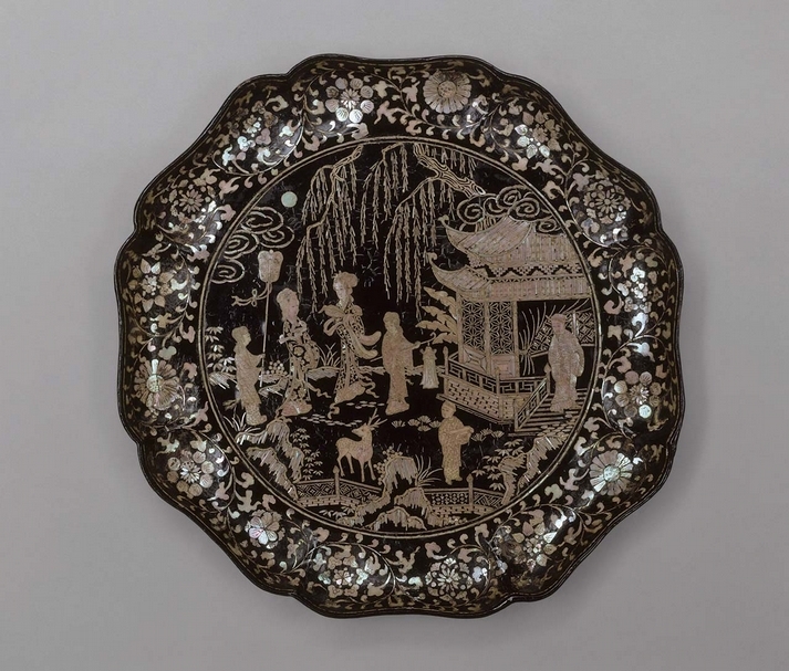 晚明〈黑漆嵌螺鈿人物故事圖葵口盤〉,Florence與Herbert Irving捐贈,2015。(©The Metropolitan Museum of Art)
