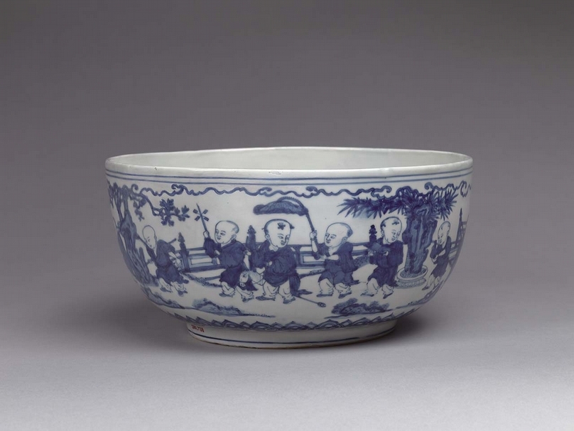 明嘉靖〈景德鎮窯青花嬰戲圖大碗〉,Denise與Andrew Saul捐贈,2001。(©The Metropolitan Museum of Art)