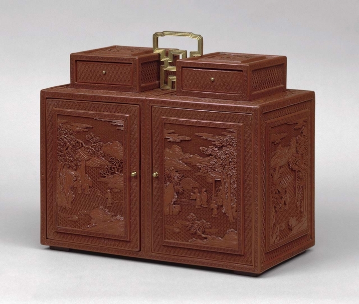 清乾隆〈剔紅山水人物紋漆箱〉,Florence與Herbert Irving捐贈,2015。(©The Metropolitan Museum of Art)