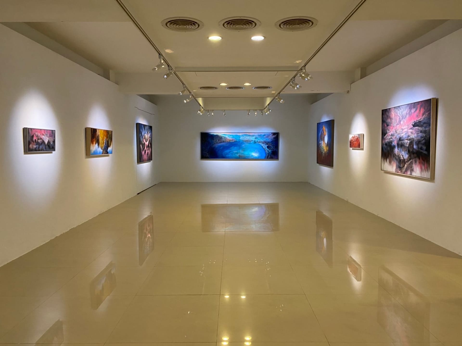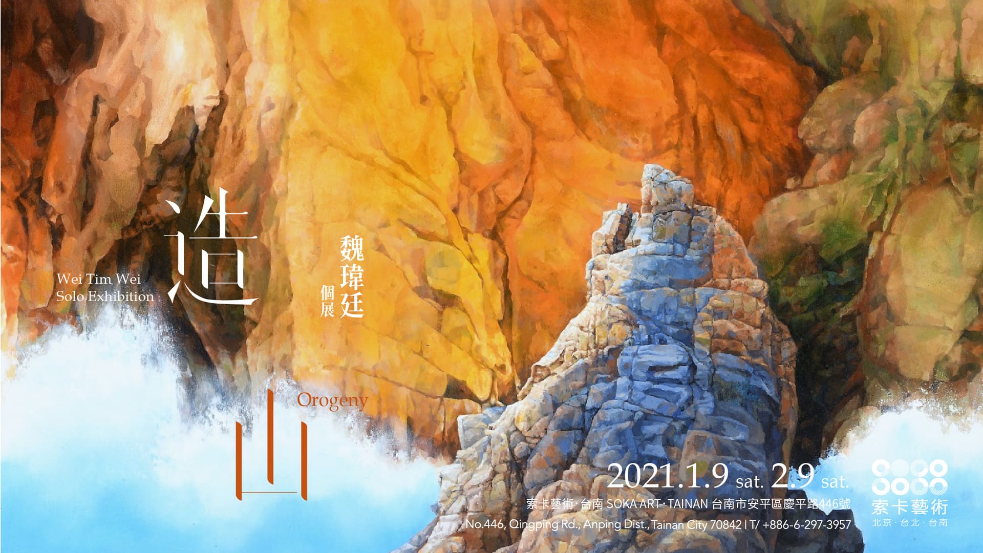 藝術家魏瑋廷於台南索卡藝術中心舉行個展「造山」並展出新作「業火」系列,延續過往對神聖山神的崇敬,藝術家作品依然賦予觀者視覺震撼的大氣磅礡與「永恆」的再現,山與木紋質感的擬真,成熟的古典技法,面對畫作使觀者體會到18世紀德國浪漫主義人與自然的爭戰,康德美學中「崇高」(Sublime)帶來的渺小對比,這些巨大山巒與想像是揀選過後的影像,成為藝術家的心像投射。作品《難馴》畫面中,迎向觀者奔騰而來的厚重雲層與閃電,色調暗黑沉重隱喻著自然的神秘難解,《懸一》中的山勢巨石,畫面底部鋪蓋了針葉林,空間的顛倒處理、飄浮失重,往往召喚的是夢境與現實的擺盪,藝術家以精細寫實手法營造夢境,宛如對於大自然心懷虔誠信仰的朝聖者,讓人聯想起超現實主義(Surréalisme)的雷內.馬格利特(Rene Magritte)挑戰著視覺與真實。