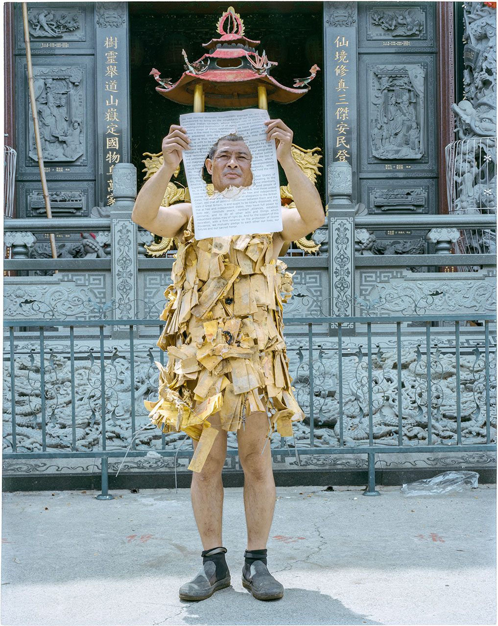 最後,《白袍》給出的則是冷眼旁觀身著白袍、仙風道骨、衣冠楚楚的新興宗教領袖,與旅館有關之荒誕行徑的藍領工人,私下業餘地用他在打掃閒暇時看的宗教雜誌和遺落至旅館房間的保險套製作的自娛,且得以讓他用來出出氣的「白袍稻草人」。這樣的模仿性的動作和言語為的只是好玩,只不過這樣的好玩不是惡、不是膚淺,而是深刻的。就像剛下工的工人知道自己全身髒兮兮而溫柔和貼心地不敢離大家太近地行走一般,這樣的深度來自其自知為一工業中生出來的獨特人種的「自覺演出」(conscious performance)。