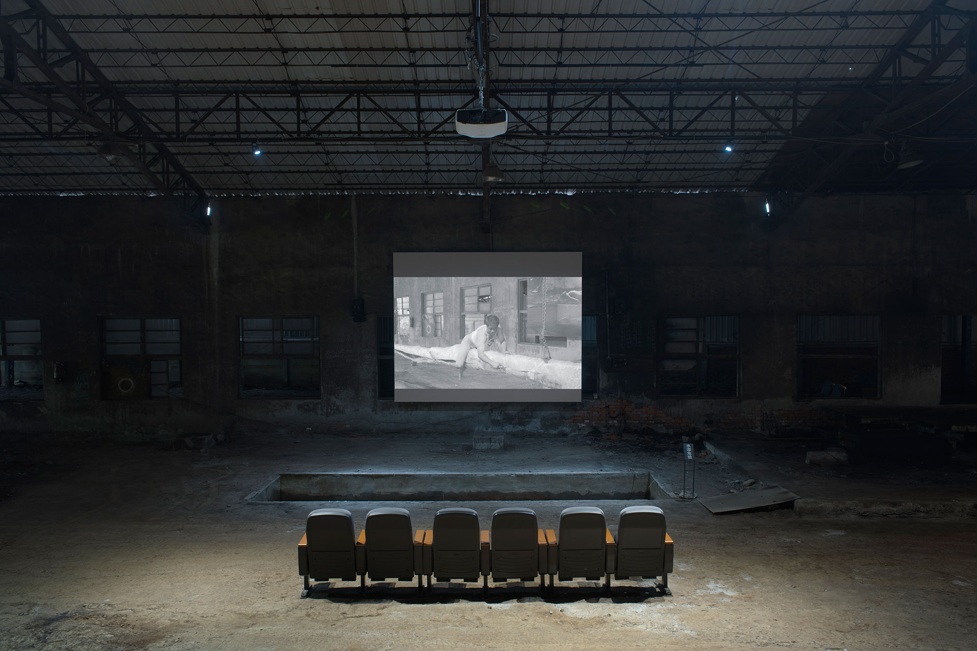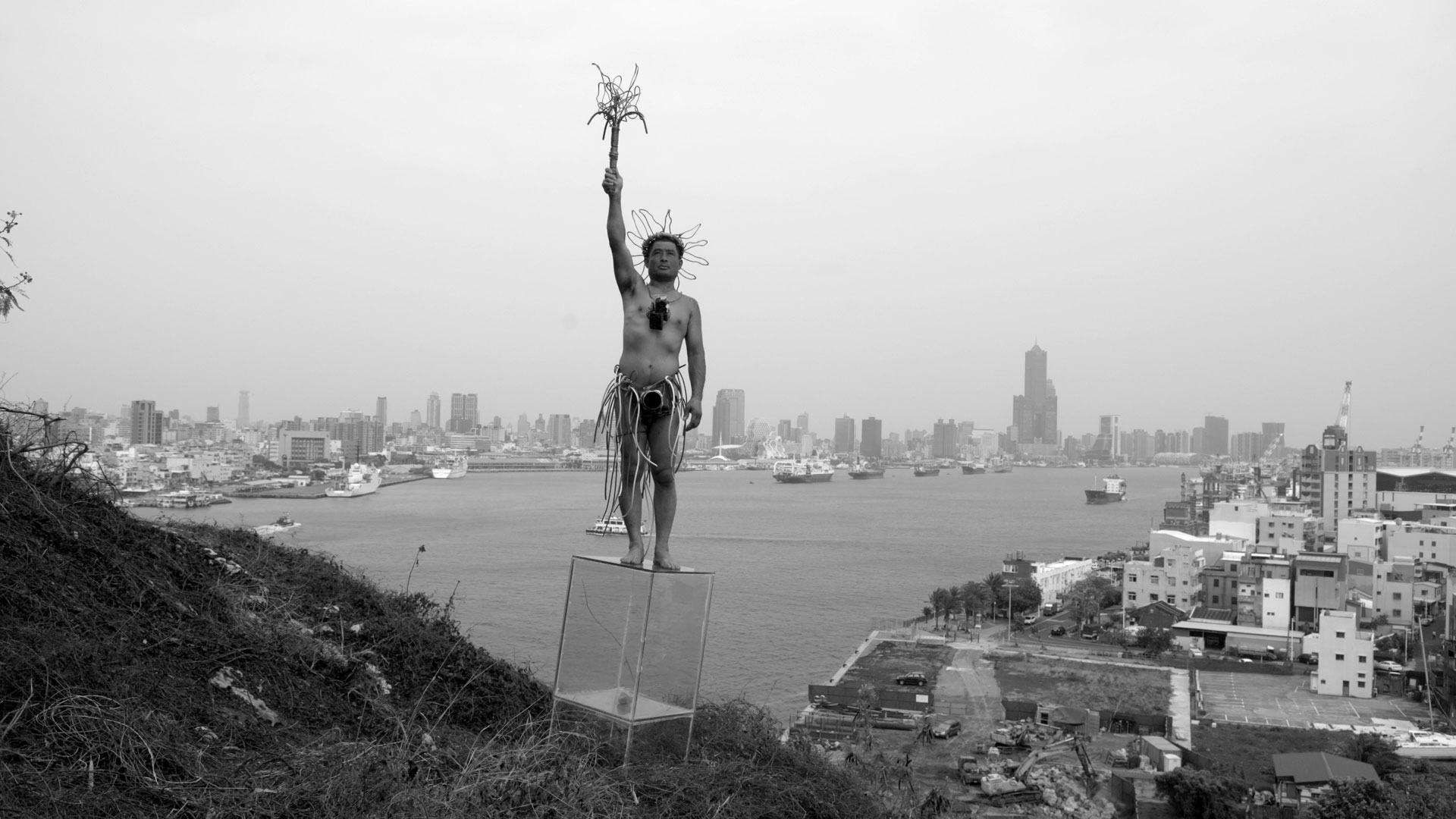 在這個意義上,前面擺著一排電影院座椅的《分娩》,就是對《海的寓言》來說有著畫龍點睛之妙的創作。《分娩》給出的是阿岡本(Giorgio Agamben)所說的「人類學機器」(anthropological machine),而阿仁則是個名符其實的「機械戰警」、「變形金剛」或「生化人」:包裹在他感覺上的樂天和不在意之中的是一連串「好心被雷劈」的過去、跟著時代潮流演變打的無數零工,以及在身體在做的過程中莫名多了幾條斷骨和鋼筋鐵片的現實。《分娩》的演出、拍攝和展示皆於負債空間進行。這種拍攝地和展示地的同一性給出的是許進源的「家」。《分娩》隱喻的是澎湖和港都勞工,在鎮日與漂流木樁和氣泡紙為伍的生活中進行如分娩般痛苦的勞動,以及在勞動過程中將自己變成一具「機械戰警」或「變形金剛」,自己看了都覺得可憐和可怖之工業機械人或生化人的現實。它既獨特又日常:這不是陳界仁的作品中的那在十二因緣中輪迴的殘破肢體,而是港都勞工傷痕累累的工殤軀體或「無器官身體」(Body without Organs, BwO)的內在吶喊,及其在無線電和軍事雷達聲代表的埋藏在港都記憶底層的潛在不安氛圍中慣常起身,並日復一日地既痛苦又認份地做、傷和療傷的現實。