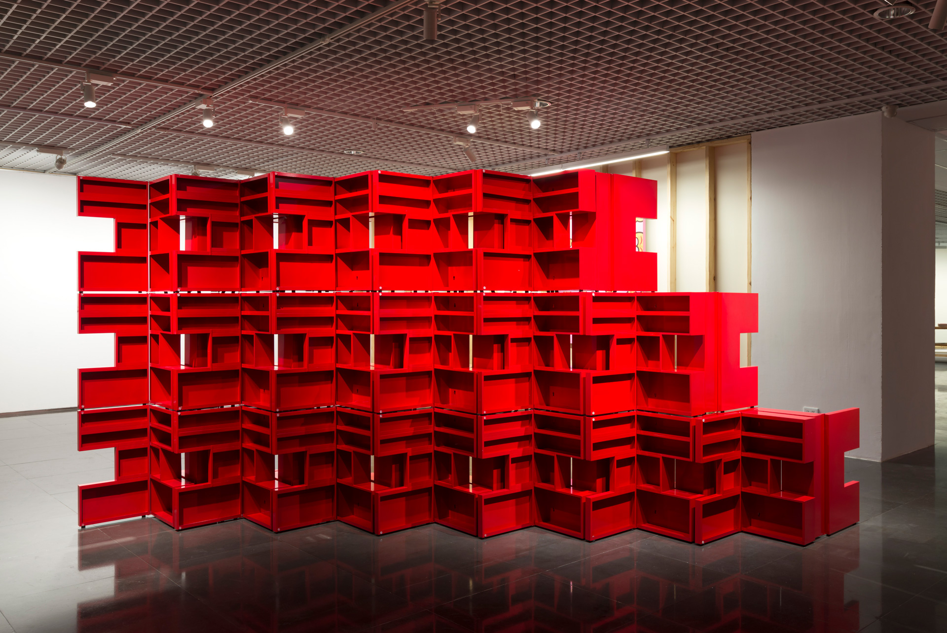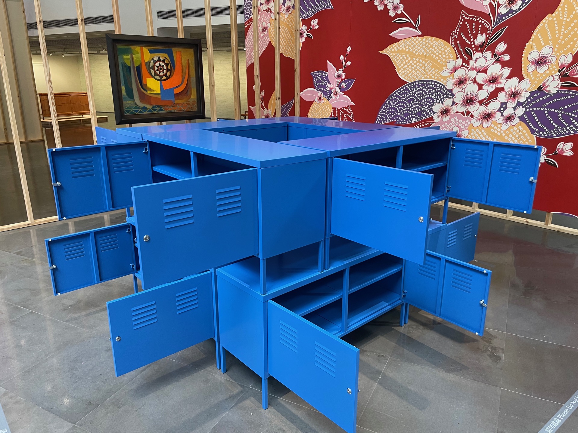 一生追求物件本質的藝術家林壽宇與致力於透過背景手法拋出疑問的林明弘,兩者碰撞一起勢必產生跨世代的化學變化。在本次展覽特別藝術計畫中,《續林壽宇(IKEA PS)》延續了林壽宇晚年試圖以現成物重新排列組合雕塑集合體,透過陌生化的手法,讓物品的原始功能不復存,但在作品中仍可以清晰辨識商品本身,在此件作品中選用瑞典跨國家俱企業IKEA,重構大眾熟悉的收納系列鐵櫃,其作打破家具「組裝」與「收納」的特質,將生活揉雜至雕塑作品中,再現藝術工藝與當代藝術的交織想像,而林明弘也提到作品將在展覽結束後,把鐵櫃退回原商店中,進而拋出作品存在與否的提問。而在展覽間,作品與顏水龍《蘭嶼印象》呈現在同個展間區塊中,共同思考了抽象主義的議題,作品在對話間,也形成了有趣的跨時代語境。