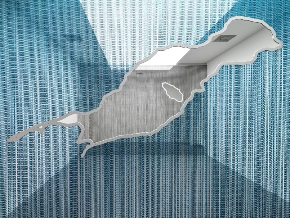 位於上環Soho House的藝術空間主要展示裝置和空間藝術作品,而展場中其中一件裝置作品為丹尼爾.史帝曼.孟加聶(Daniel Steegmann Mangrané) 的《夏日的雲》。作品所使用的克里斯卡(Kriska)鋁金屬簾多見於藝術家的出生地西班牙加泰羅尼亞,並以其輕盈的質感著稱,當有人穿過簾幕時,便會發出清脆的金屬碰撞聲。如題所示,蔚藍色的鋁金屬簾象徵夏日天空。觀眾可選擇直接穿過簾幕,主動消弭空間中被作品劃分的疆界。穿過作品時稍縱即逝的一刻,觀眾恍惚被簾幕輕撫,繼而步入另一個空間。簾幕上的切割孔為作品形成多層次的空間感,觀眾從切割孔中能夠窺探空間的另一方,遠眺在展廳窗外,高樓大廈夾縫之間顯露的初夏浮雲。簾幕上的切割孔有著獨特的幾何造型,形狀恍如地圖上某個神秘國度的域界,而鋁金屬簾幕又同時將展覽空間分割成不同領域。作品中種種與區隔、邊界、領域相關的意象,教人聯想到加泰羅尼亞地區的獨特地緣政治環境和相關爭議。
