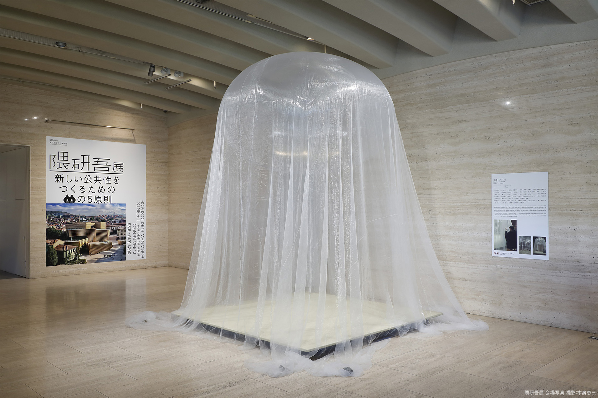 在這區天花板上特別掛上的是,位在奧運主場館記者區、由繩網製作而成的燈罩,並在開幕之前首度公開亮相。柔軟的建築例子則為《浮庵》,特別在展示場外再現。《浮庵》是由氦氣氣球與世界上最輕的透明紡紗組成,羽毛般漂浮的茶室。當初為美國華盛頓日本大使館茶文化活動設計而成,也時挑戰了包圍的定義、移動茶室的極限。