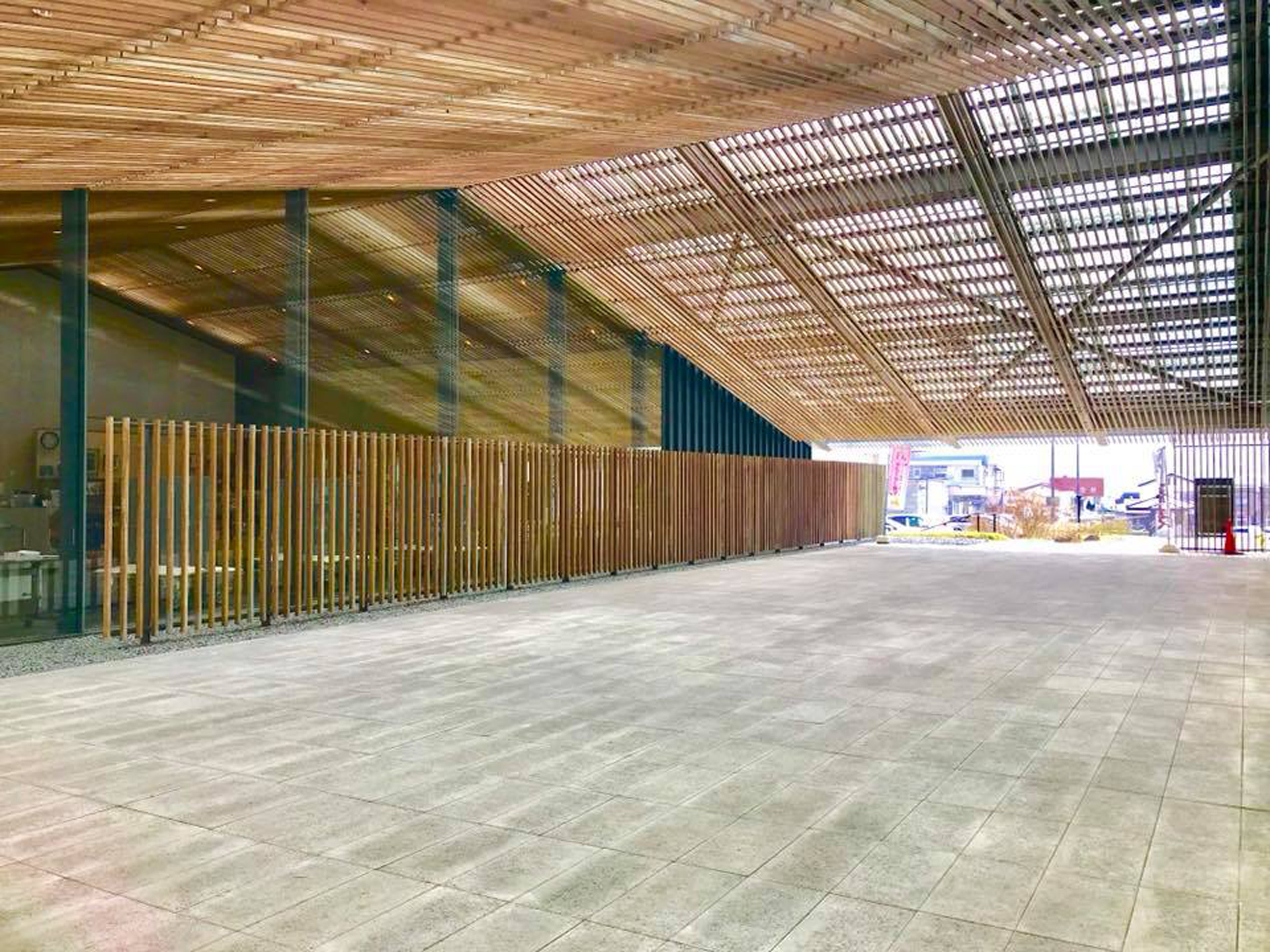 在此介紹的是福山縣kirari美術館・圖書館複合設施。中空而傾斜的手扶梯,使來館者搭乘時,將各層樓風景盡收眼底。表面宛如鋁板隨意插入建築物,再次感受「斜」的巧思,也讓人聯想窗外立山連綿的風情。