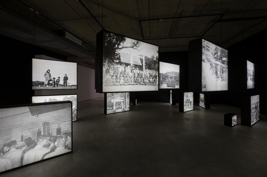 曹良賓作品燈箱的背面,則是日治時期神社的相關歷史檔案。(TKG+ Projects提供)