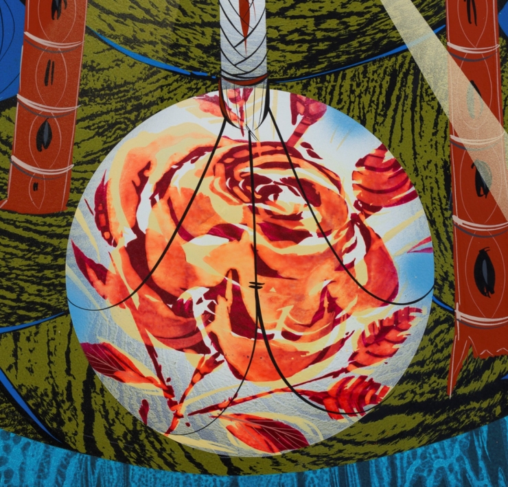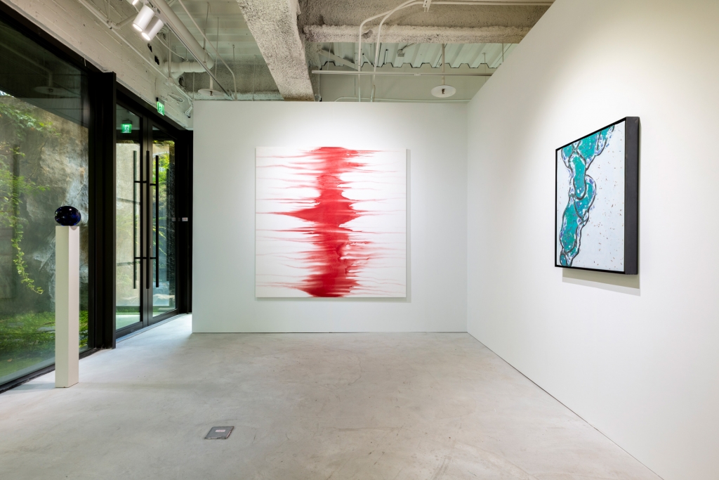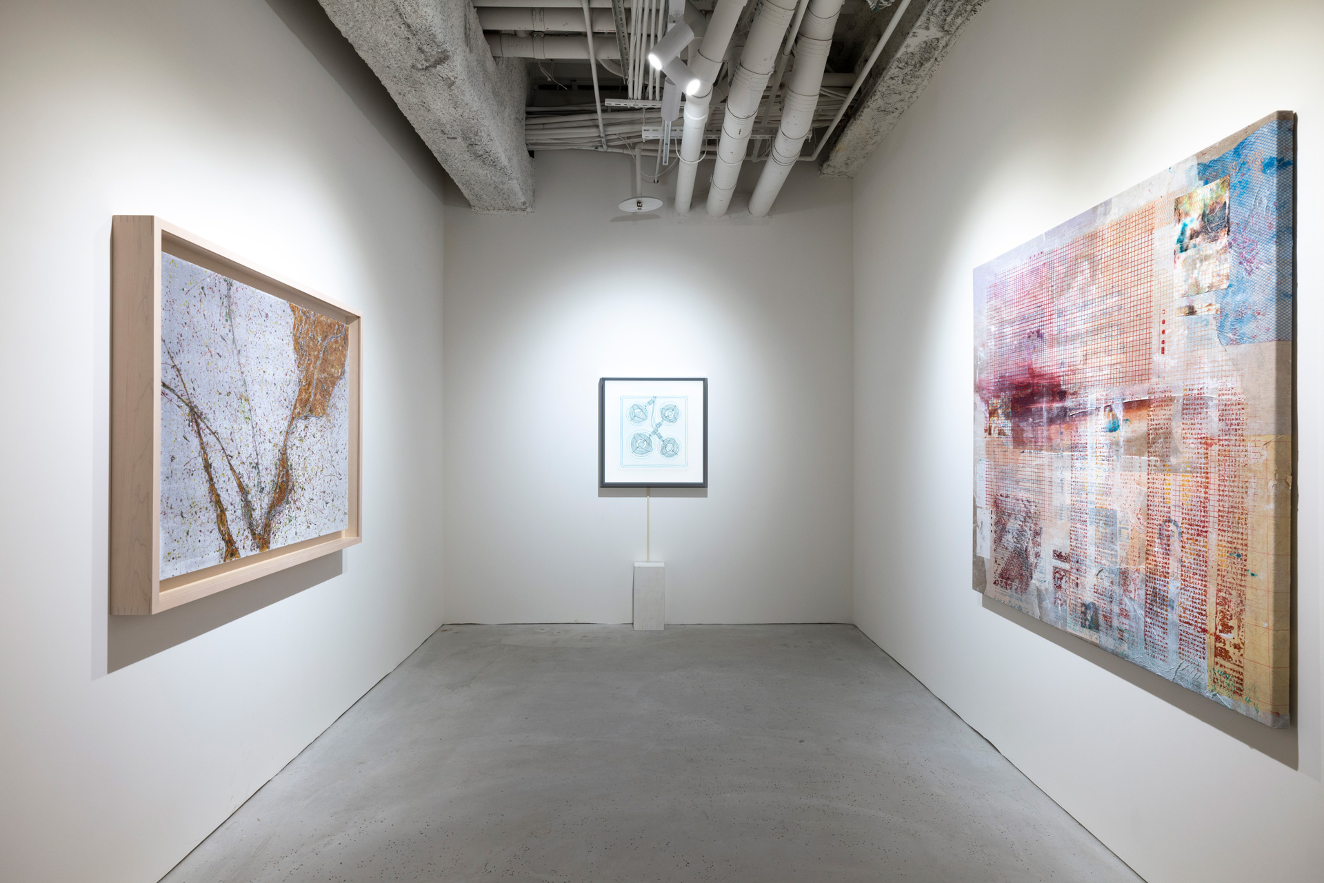 在這其中,繪畫性的探索佔據相當重要的位置,有比尼恩標誌性的以私人檔案為基底、油畫棒顏料形塑的網格抽象畫作《DNA:Study》,有奧特羅以波多黎各童年家屋以及生命經歷中各種具象、抽象的記憶物件組構而成的《Cold Facts》等畫作與素描若干,埃爾-薩伊的作品於微妙抽象間探索媒材與繪畫語言的共生,赫什阿里的畫面則同時具備簡約與錯綜複雜的特性,在密織的線條、如霧的顏料的呼吸起伏間涵納精神與歷史的交織,呼籲觀者值得靜下心觀看。此外,李昢震撼人心的繪畫系列「Perdu」混合了有機、無機材質與觀念,於平面畫面中凝結了其游刃有餘於多種媒體間的宏大關懷。幾件裝置作品同樣多元而深刻,包括徐道獲標誌性的纖維雕塑「標本」(Specimen)系列與象徵意味濃郁的鍍金裝置《Karma》,以及1960年代美國「光與空間運動」代表人物之一海倫.帕什加為光賦形的經典作品。立木畫廊帶來這些難得於台灣一見的作品,為本地觀眾進一步認識這些在國際間多元、且頗具代表性的藝術家提供了絕佳入口。