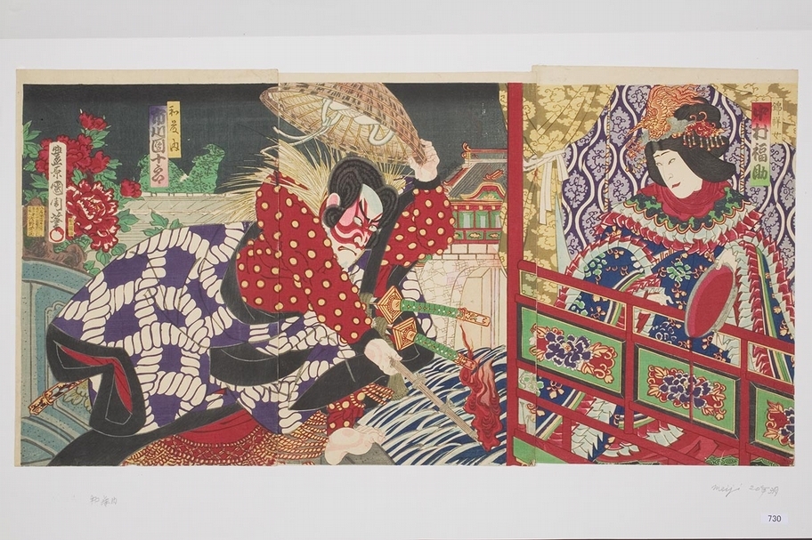 豐原國周(1835-1900)《 和藤內(國姓爺之戰)》紙本、木板,含框尺寸 54.3x93cm,江戶,1890。(京都造形藝術大學藝術館典藏、京都大學博物館聯盟提供)