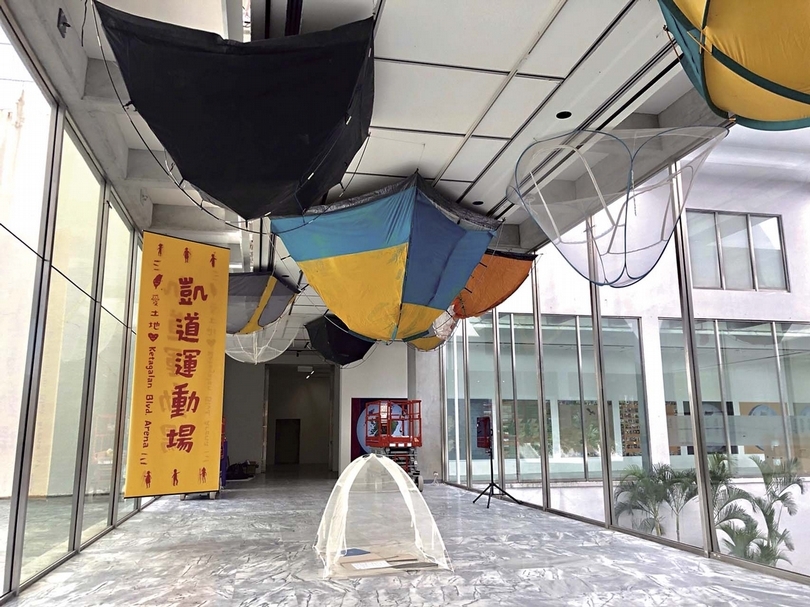 原轉小教室「凱道運動場」(2018)在本屆雙年展中的出現,可謂令人驚喜。當他們將曾經並仍部分持續地生成於凱道的行動從街頭移至美術館中時,包括在抗爭現場舉辦超過170場的「凱道小講堂」、不斷生長的藝術接力創作、宛若大事記紀念碑的巨大錐形竹架、記錄影像、夜宿凱道使用過的帳篷等等,仿佛某類被移植的草木,認真而頑強地生長,試圖在異域撒下新的種子(在不盡相同的受眾群中傳遞原住民族轉型正義之重要性)。其與生態議題的連結,不僅在於原住民傳統領域中的生態環境遭到破壞,更深層的是,此一糅合了原住民精神生態與當代抗爭組織形式、集體創作的自發行動,願景在於友善共生的土地文化之永續,所訴求的也不是簡單的修復,而是朝向「未然」的創造性關係。聯想到原住民族相較於現代文明社會,保有更多與自然溝通的能力,原轉小教室在這樣一個探討生態議題的雙年展中現身,便具有了精妙的多層次內涵,他們的口號「沒有人是局外人」,一語道破生態危機的普遍性本質。