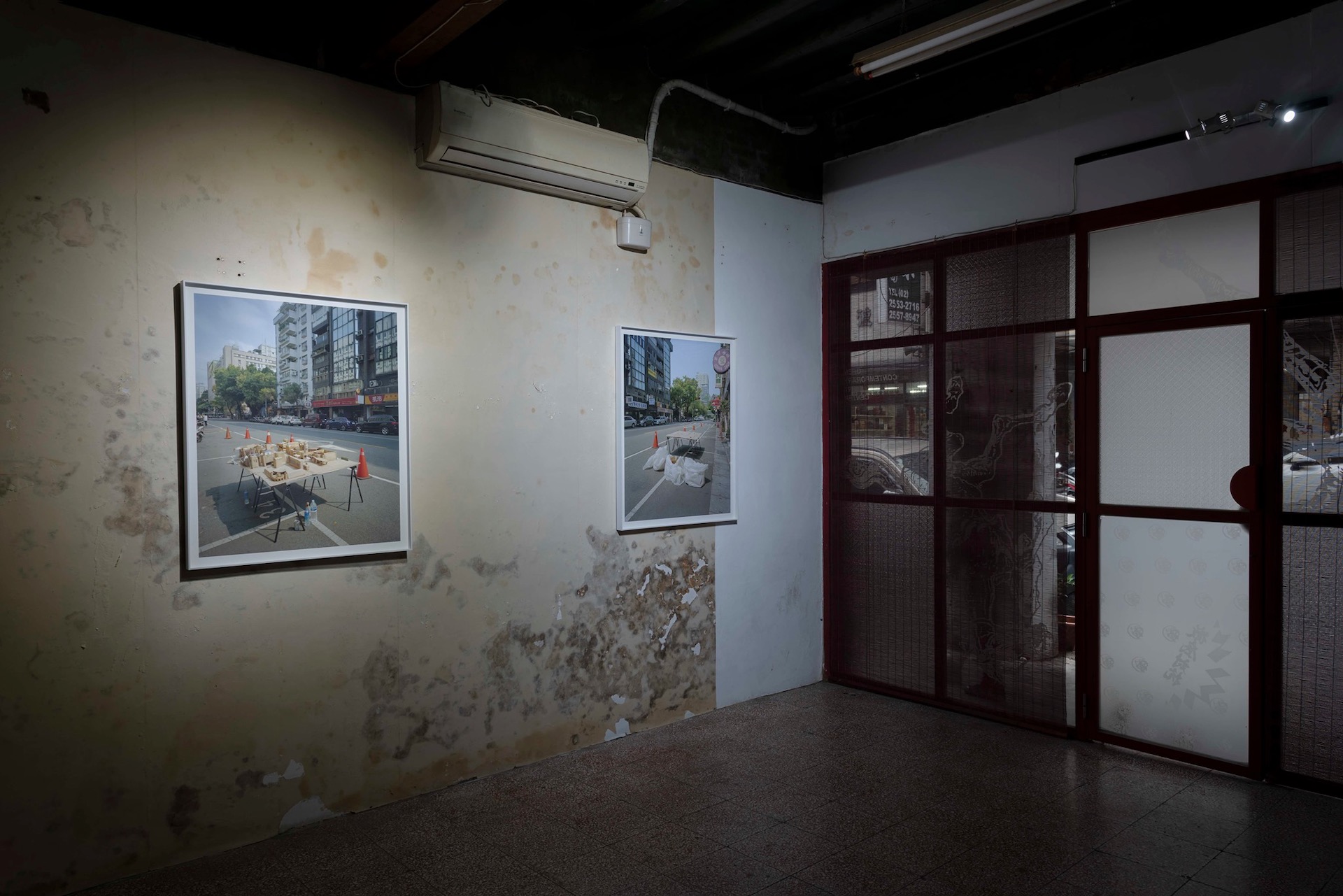 「遺照」指向過去,「藍圖」指向未來,二者不只在空間上對峙、也在時間上對反。這樣的圖像空間配置乍看像是在說:318議場的佔領行動已然結束,民主的聖殿即將來臨。然而,在時間的序列結構上,「藍圖」本身就有一個內在的悖論:它既是一張指向未來、指向「即將存在之物」、用以建築工事的「施作藍圖」,但它也是一張遠比建築體更早存在、最終(在建築體傾頹甚至湮滅之後)卻將會比建築本身存在得更久的「檔案(化)藍圖」。這讓展場空間裡對峙的二組圖像之間的關係變得異常複雜,絕非「從318議場撤退之後就迎來了民主聖殿」這麼簡易、這麼單向。