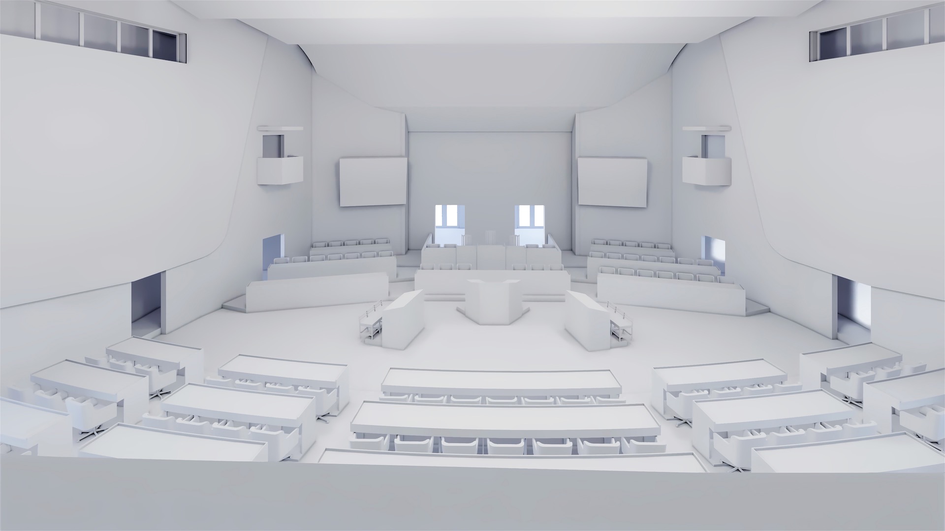 這棟建築物即是立法院——先前鄭重告別的議場,如今再度返回現場;是以這部影片被命名為《複本》。二位藝術家從網路以及記錄318運動的書籍裡,蒐集了抗爭者在佔領議場期間拍攝的照片,加上兩人自身曾經在場的經驗與記憶,與建築設計師李佳樺合作,以這些影像素材作為參考,在電腦軟體裡重新建構出一座立法院的空間模型。(註9)