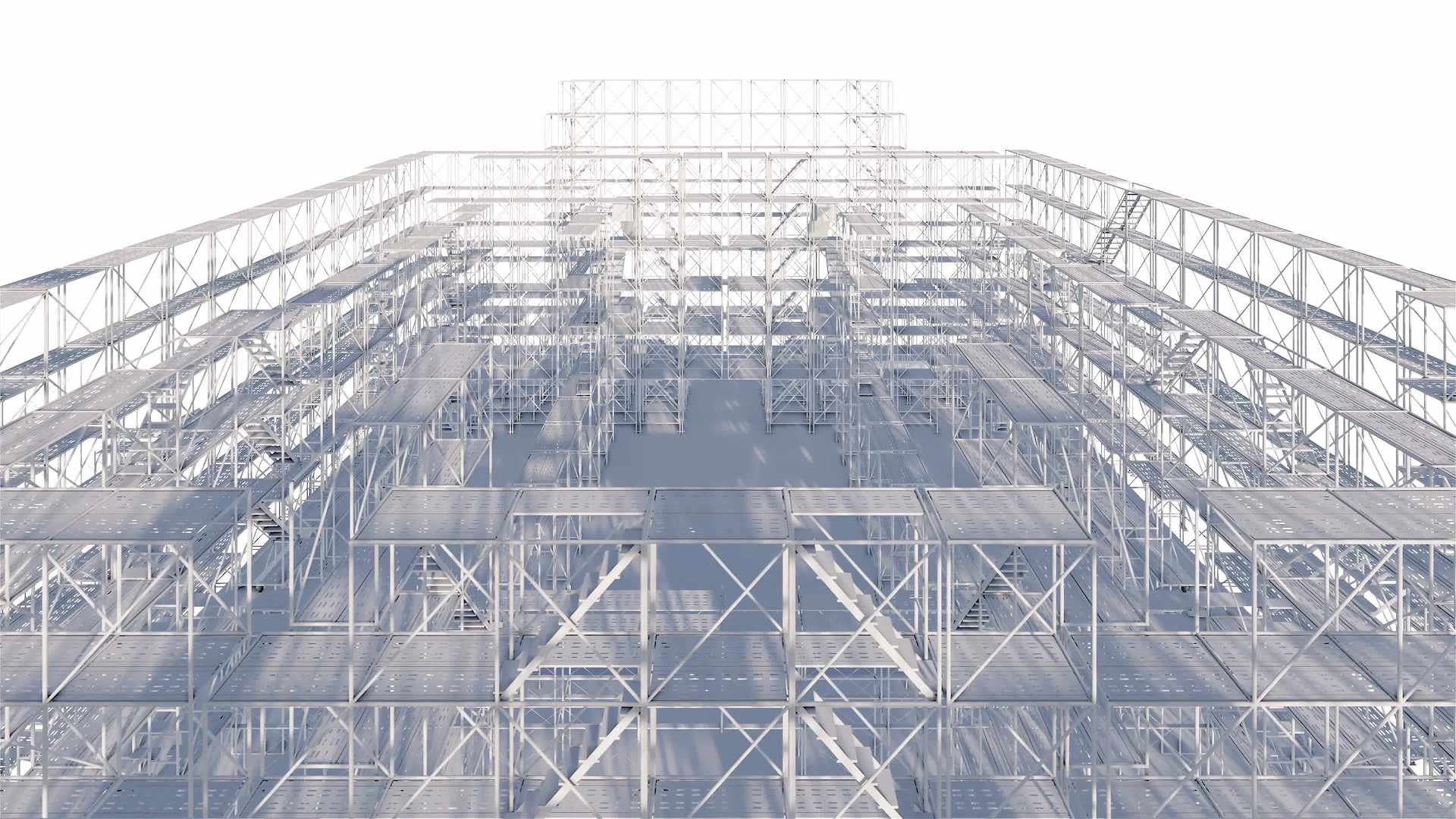 更曖昧的是,看完整部錄像作品,你同時會感覺到:攝影機所巡視的,似乎不是一座施工中、但工人暫時下工返家、靜止凝定的建築體;建築本身在攝影機運動之下(或者說在鏡頭的凝視之下),彷彿被催生為一個「有機體」,它隨著攝影機的動線、隨著視線所及的軌跡,而啟動了自身的生長,有如一座樹屋,藤蔓不斷滋長、攀爬、延展,攝影機、視線走到哪,它總是早一步鋪展到哪——當鷹架既重建又拆卸,長鏡頭卻又創生。全片毫無剪接、一氣呵成、一鏡到底的「長鏡頭」,加強了此一視覺感知(沒有兩個鏡頭之間的空檔,好讓拍攝者對建物構造動手腳)——雖然,作為一部由電腦動畫所繪製的錄像作品,原本就沒有「拍攝素材之後於剪接檯上進行後製編輯」這道工序可言。在實拍電影裡(常見的以現實場景人事物拍攝的電影),「長鏡頭」原本允諾了一種寫實主義(最具代表性的論述來自安德烈.巴贊);但在電腦動畫裡,長鏡頭寫實主義傾向的擬真再現反而額外予人一種「RPG電玩」或「VR沉浸」的視覺效果。這個寫實悖論恰好呈現了《複本》激進的「反再現」立場。