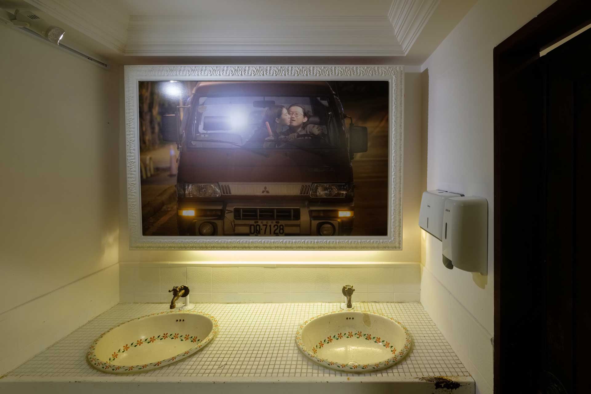 當我試圖從燈光、空間、去除符號與議題,乃至於拼貼與擺拍等面向去描述「最後的情人節」,就好像在說,這是一個與當代藝術截然不同的東西。確實「最後的情人節」的魅力,有一大部分是來自於它看起來不那麼像藝術,那些擺拍或是拼疊的手法,並沒有讓作品看起來更精巧(這是很多台灣攝影家會做的),反而讓視覺經驗更加的混雜,但也不盡然如此。我覺得這個展,某個程度反而回到了很當代創作者的立場,那就是處理關係,而不是訴說意義。以空間配置而言,莊約翰在這樣個性如此強烈的地方,卻沒有讓作品成為空間的裝飾,顯示莊約翰與策展團隊具有一種成熟的當代展呈概念。藝術在此,並不是作為一種形式優美的物質實體,而是實體與空間、理論之間的關係,也就是一種語境。有時候當代藝術反而忘記這件事了。他們讓作品指向了比語境更大的議題,於是語境成為了警語或是分析。