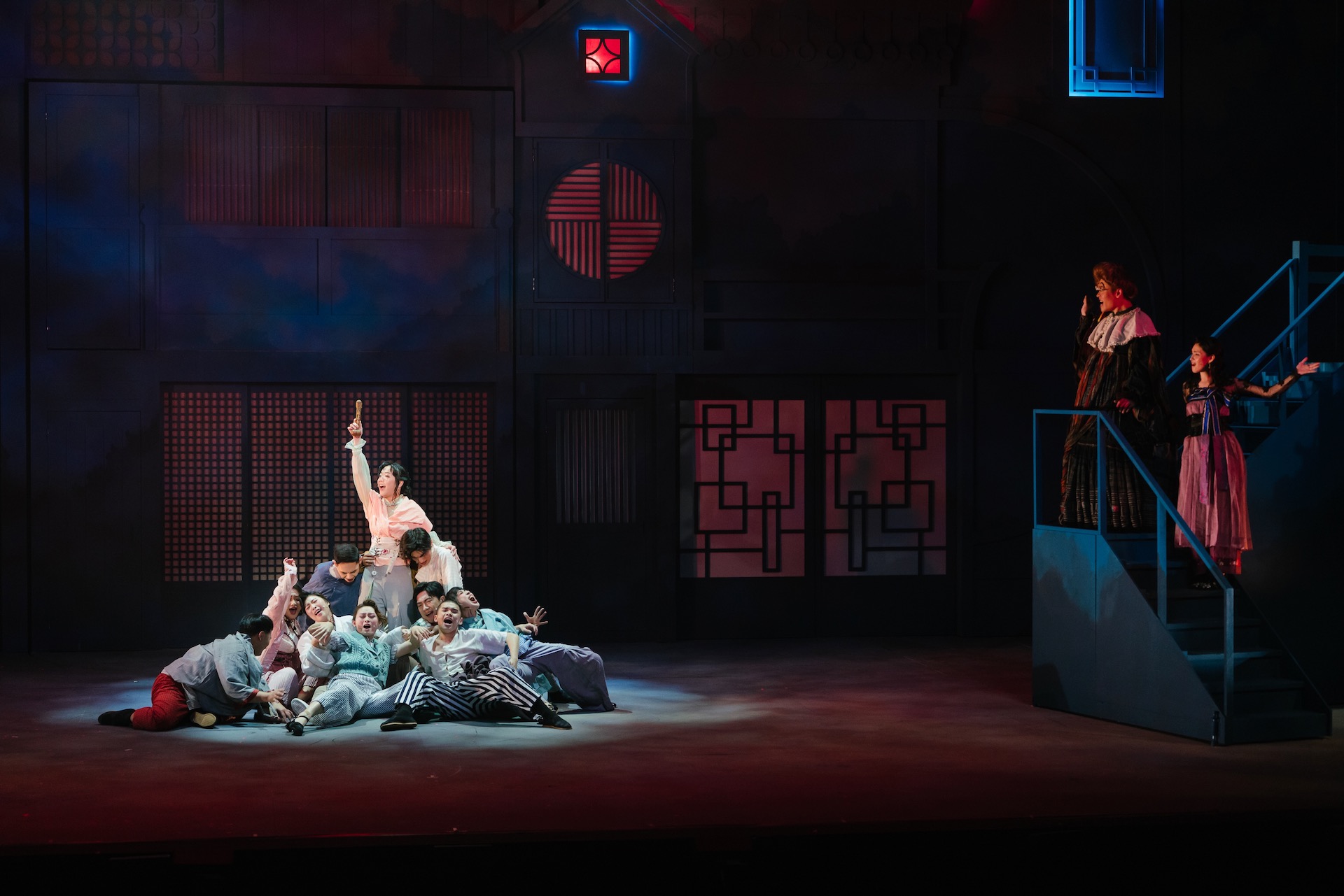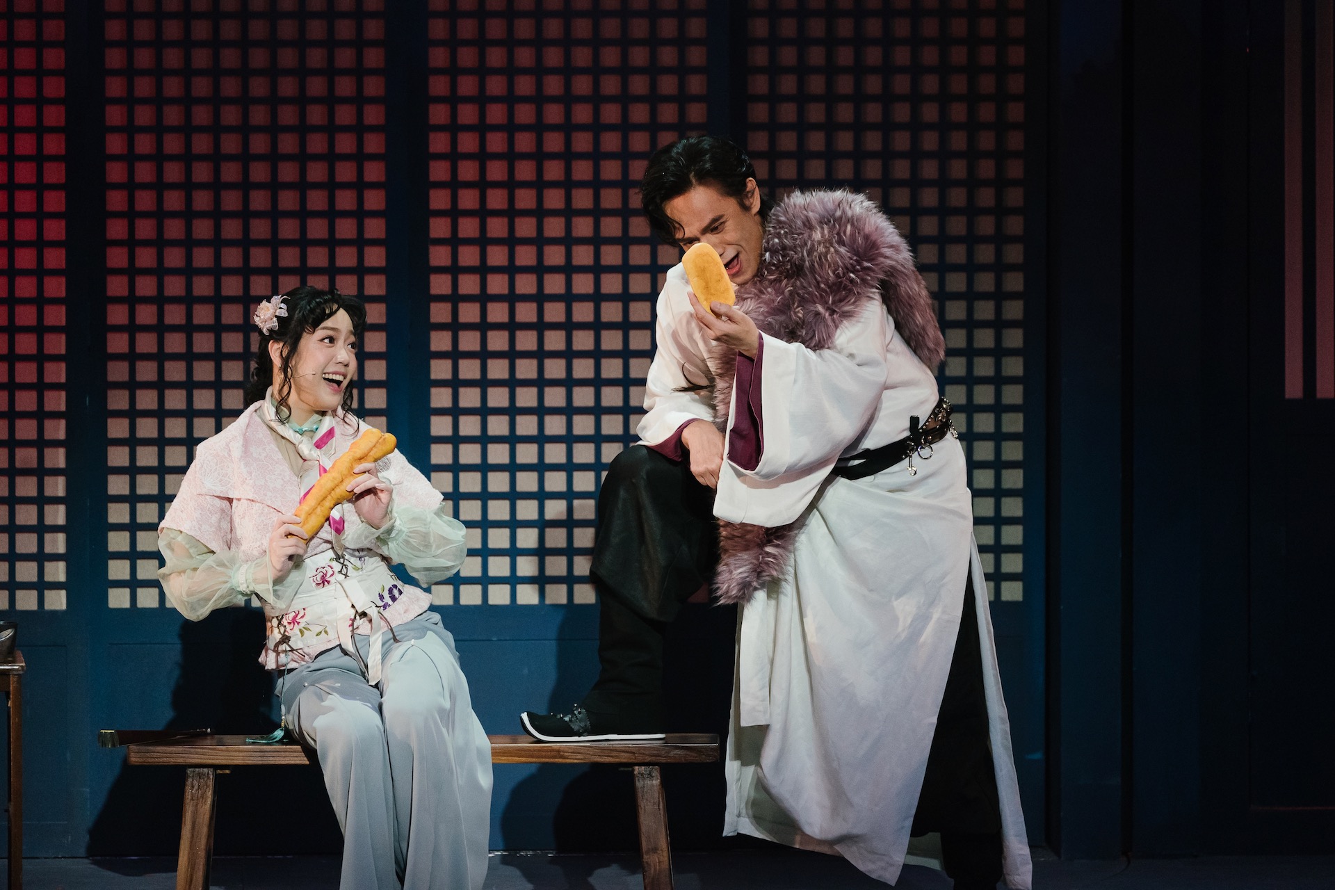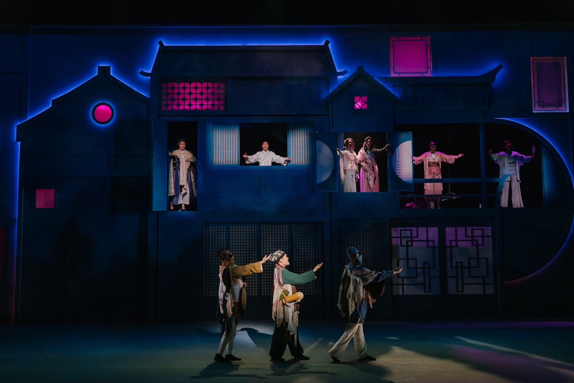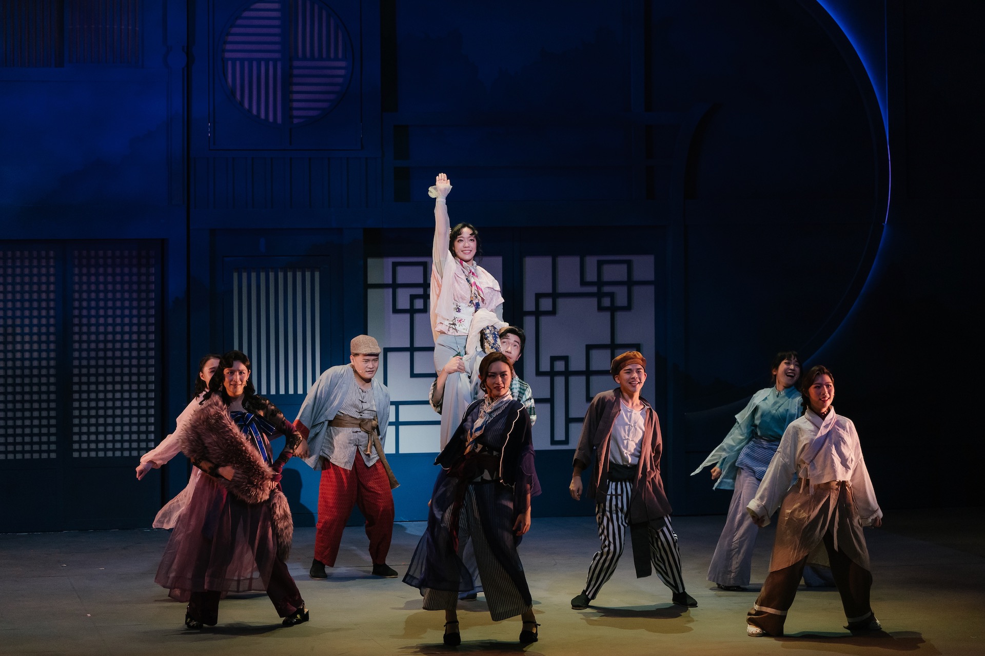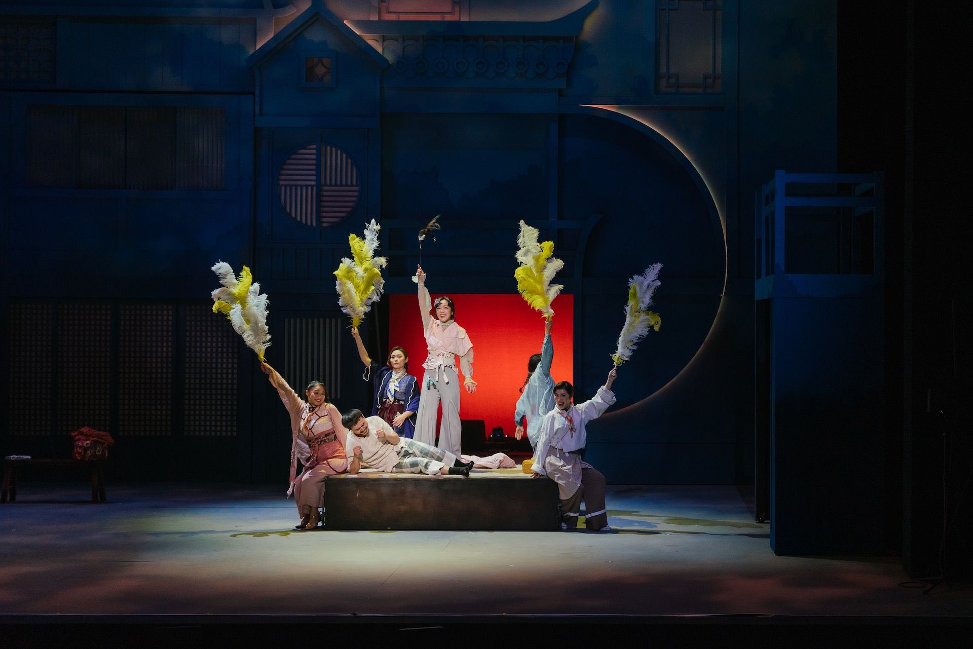 《當金蓮成熟時》為瘋戲樂工作室首演於2021年初的原創音樂劇,今年3月於臺北表演藝術中心試營運再次演出。長達近三個小時的歌舞音樂劇《當金蓮成熟時》,可說是一場徹頭徹尾的英雄之旅——以大量的合唱與團結一致的表演身體,讚美了一個從「傳統」的婦德世界,歷經啟蒙與苦難,最終因擁抱「自身慾望」而光榮登基的當代神話。劇中角色的功能性與自我矛盾,洩露其龐雜臃腫的故事動力並非源於角色,而是藉由匯聚在潘金蓮身體上的集體性所驅動。於是在這樣的民族起源神話敘事下,金蓮的「成熟」相較於自述「我是一個活生生的人」所欲指涉到的自我、身體或慾望,取而代之顯現的反倒是另外一根再次被豎立起的、令人悚然的集體陽具。