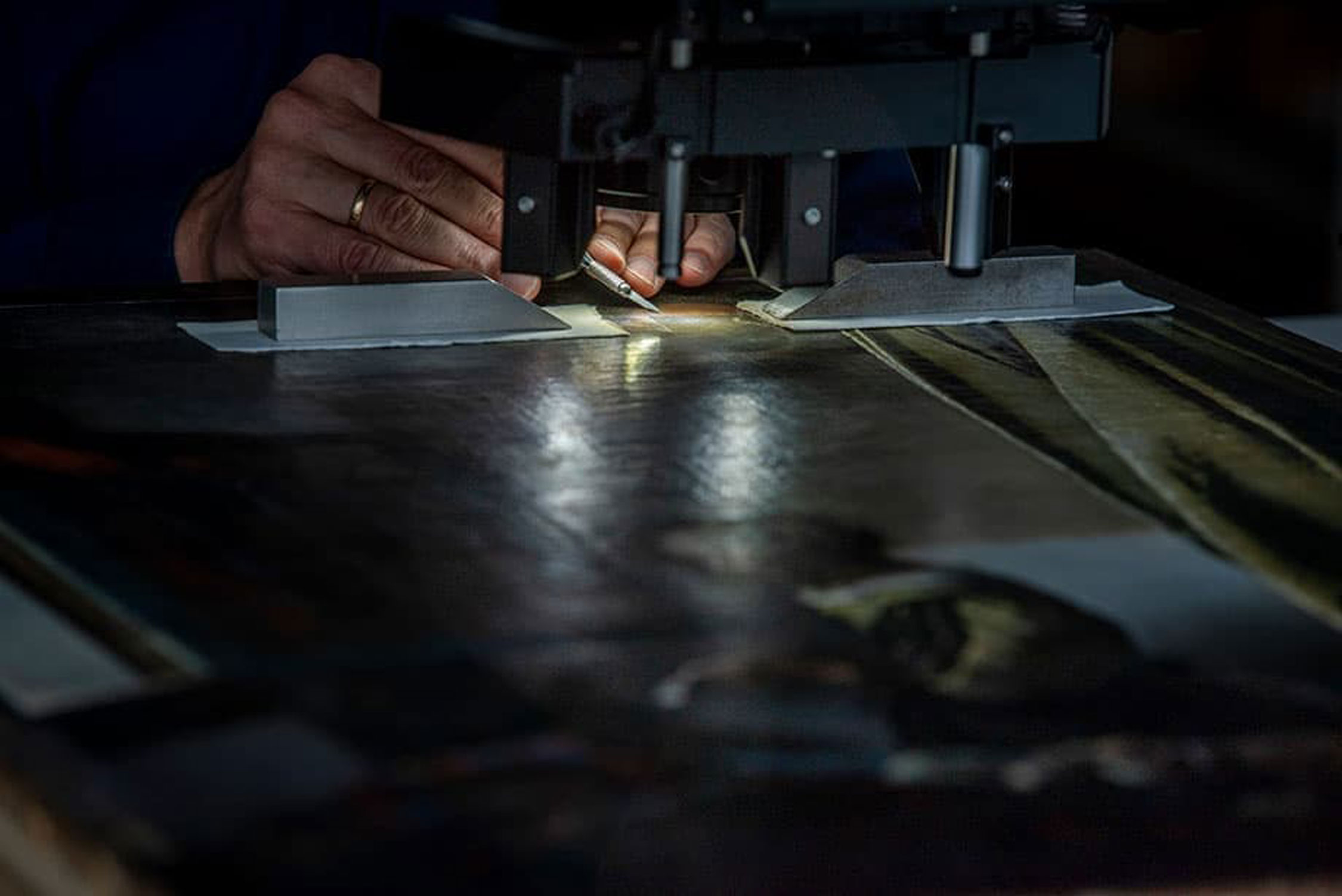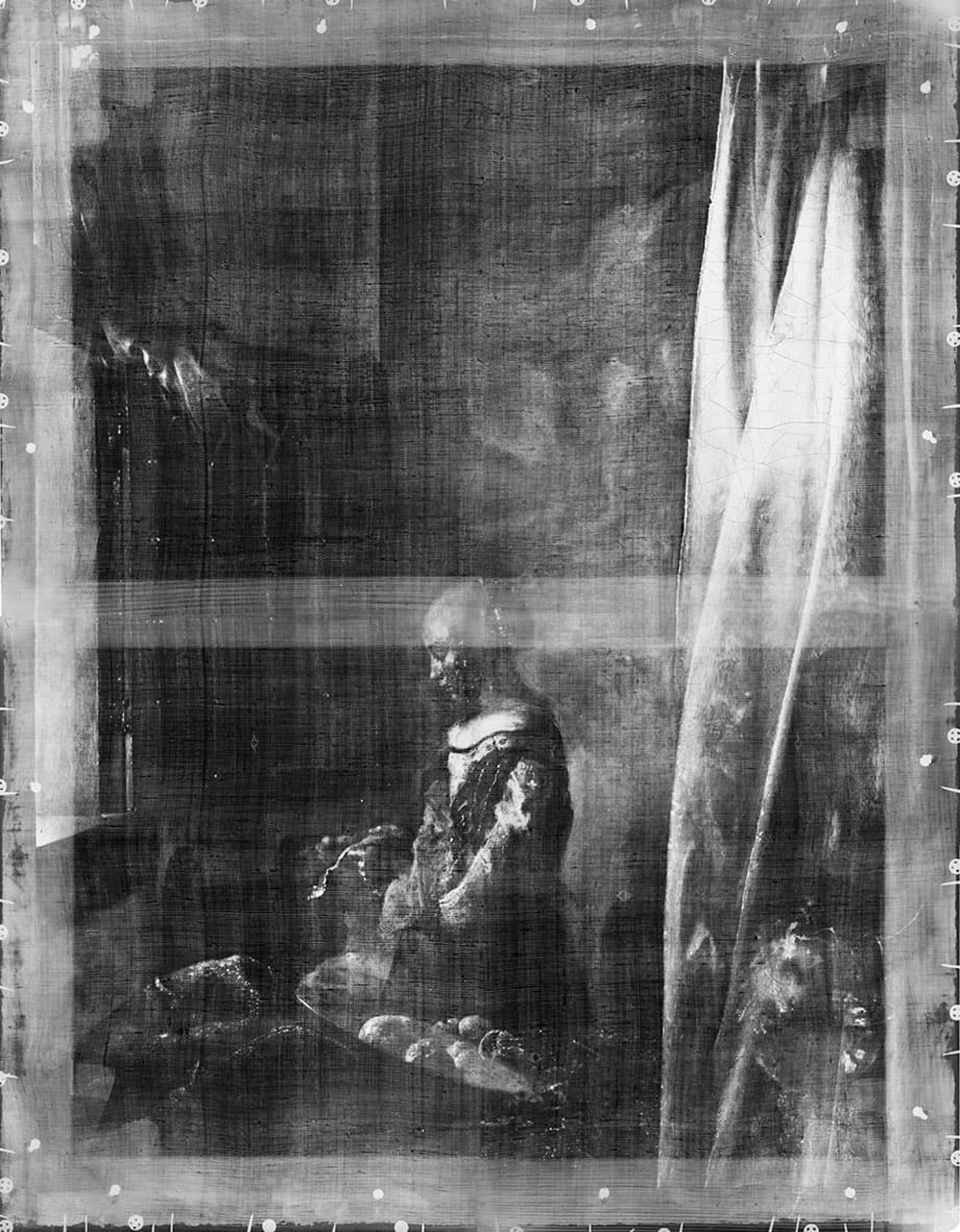 於是第二個問題出現——用牆面覆蓋邱比特的人與動機為何?而這點至今尚未有定論。較明顯的推測得回歸到1742年《窗邊讀信的少女》被納入館藏時,維梅爾仍屬於被世俗遺忘的狀態。根據納入館藏的交涉書件中,此作品被力稱是知名度更高的林布蘭所繪。藝術史學者因此推測有人為使作品看起來更像林布蘭的創作而將邱比特掩埋。值得慶幸的是,這幅作品的修復至2021年已順利完工,展場的影片播放修復師用棉棒塗抹溶劑在畫面表層、顯微鏡下用解剖刀細膩粉碎覆蓋邱比特的牆壁、博物館員分享心得的過程,也使看見名作的當下更顯動容。