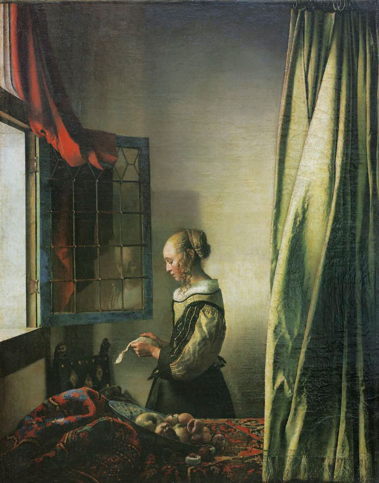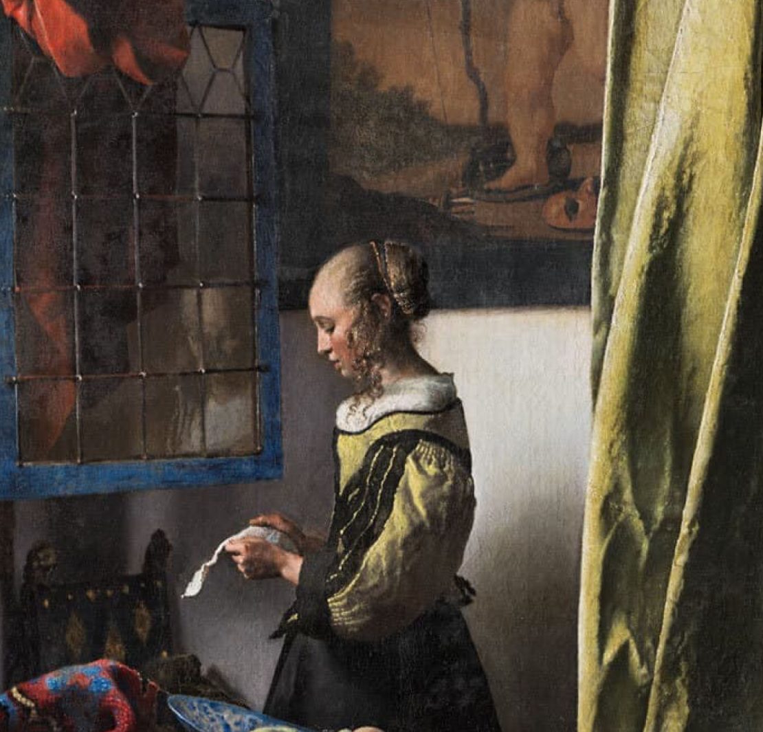 原來,約翰尼斯.維梅爾(Johannes Vermeer)並沒有把牆上的邱比特抹去。《窗邊讀信的少女》的身旁,一直有邱比特的陪伴。