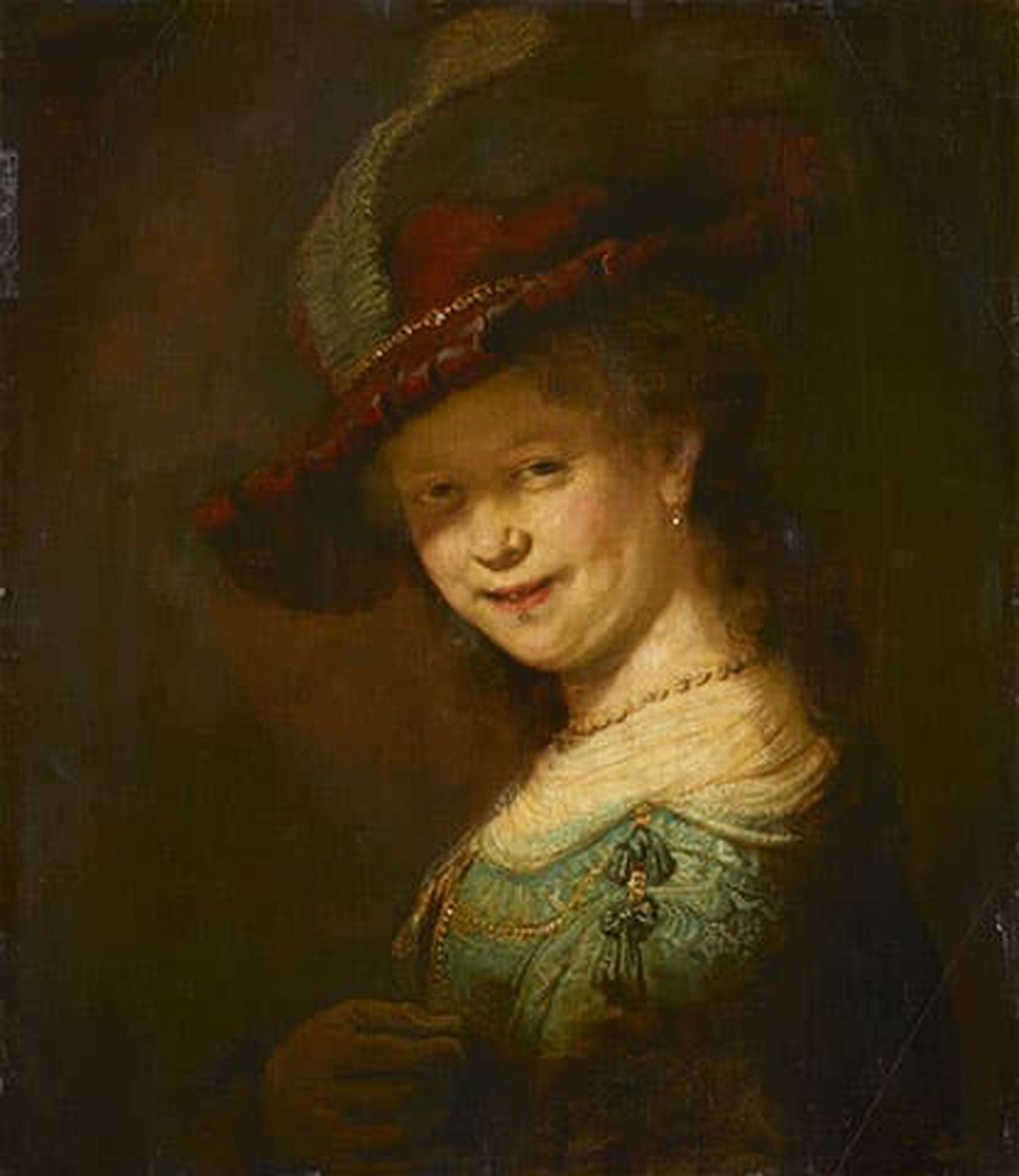 我們可以看見林布蘭也在為這樣的社會條件進行練習。美術史學家從文獻與臉部特徵,判定《年輕的莎斯姬亞肖像》為林布蘭繪製隔年即將結婚的妻子肖像。從非主流流行的古典服裝與腮紅臉頰畫法的特徵,可以判定是畫家自行練習特定技巧的習作。從莎斯姬亞幸福洋溢的微笑中,似乎可以揣想陷入愛戀的林布蘭正在為她創作的景象。