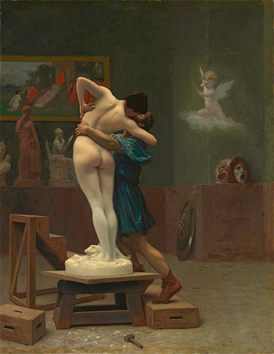 展覽的最後一部分,進入法國大革命以後的美術「革命與人民的藝術」。在這裡展示大家熟知的雷諾瓦、梵谷、竇加、塞尚、莫內等印象派與後印象派的作品,顯示藝術不再全然由皇宮貴族與學院沙龍展覽把持,明顯脫離理想、平衡而古典的美感,美的詮釋轉向社會的現實以及藝術家的內心活動。為了比較官方沙龍藝術與印象派等的差別,展覽選擇19世紀後期的法國學術派代表之一尚─里昂.傑洛姆(Jean-Léon Gérôme)的《畢馬龍與加拉蒂亞》。畫中主題取材自希臘神話中,塞浦路斯的雕刻師畢馬龍在愛上了他製作的雕像後,終日向天禱告,只求與她相戀一回,後來得到了維納斯的應允,派遣邱比特為雕塑賦予生命。
