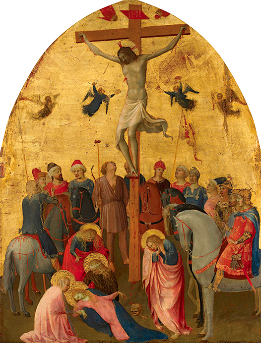 另外在技法改變方面,不得不提到安傑利柯(Fra Angelico)。在他創作的《基督受難》裡,運用單點透視,將圍觀基督受難的人群以橢圓形排列,為最早表現立體感的畫家之一。