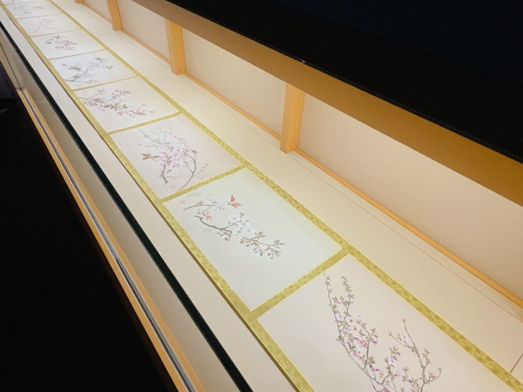 另外也有跡見玉枝的《櫻花圖卷》,25幅畫作中,畫家描繪了超過40種的櫻花品種。1930年,他曾繪製50株櫻花圖的畫帖獻給天皇,可惜這件作品已不知去向,但或許能從展出的作品中感受畫家對櫻花的執著與熱愛。