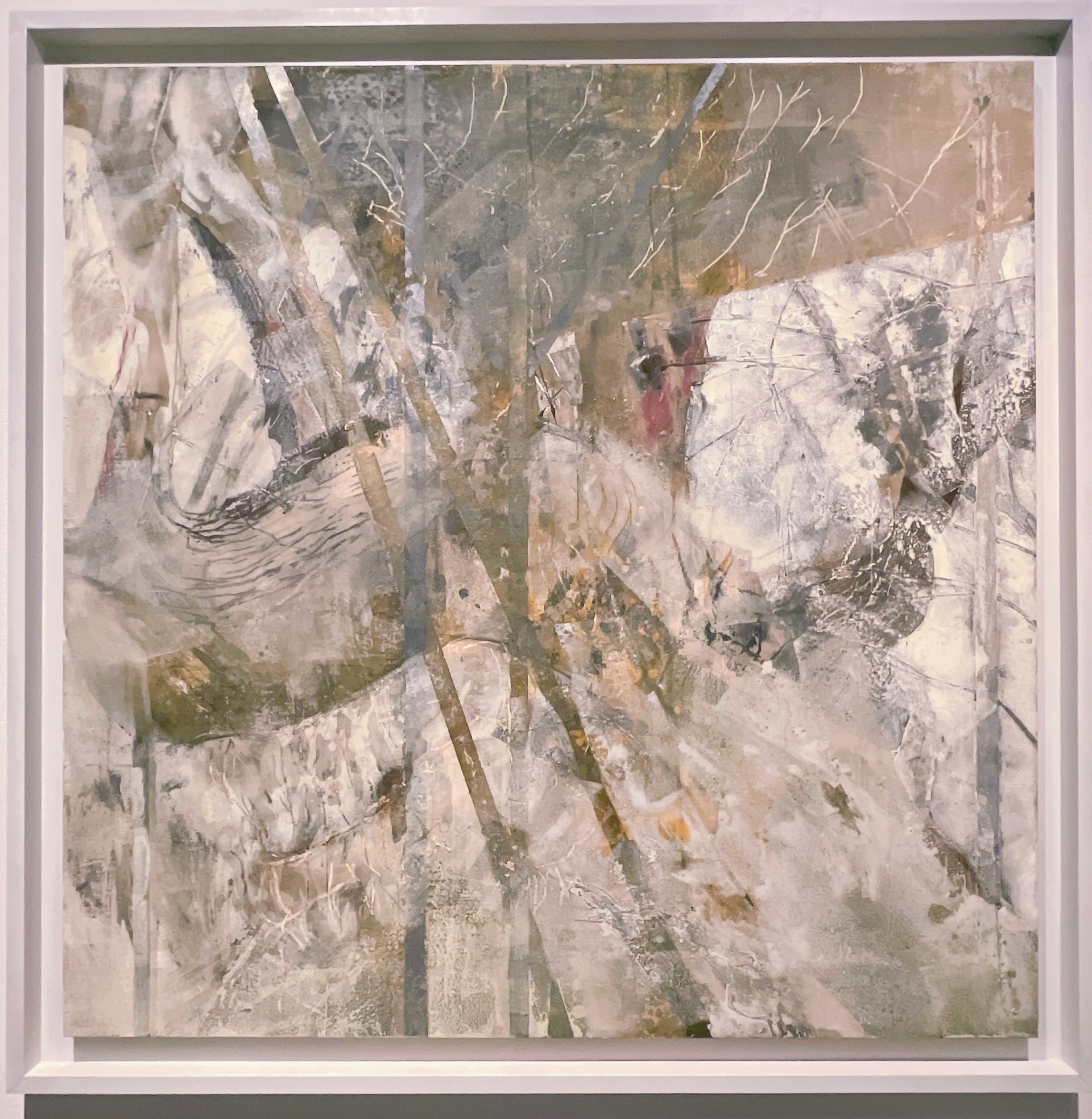 畫家菅原健彥過去以描繪暗沉厚重的都市、煙囪風景受到注目,然而在1995年自德國留學歸國後,他隱居山梨縣山間,遇見北杜市實相寺內樹齡高達兩千年的「神代櫻」後一改畫風,投入以樹木、自然為主題創作。《神代櫻》畫面中央較為清晰的樹幹以外,畫家以各種手法層層堆疊肌理表現樹木的量體,傳達他感受到的時間長度與生命力度。