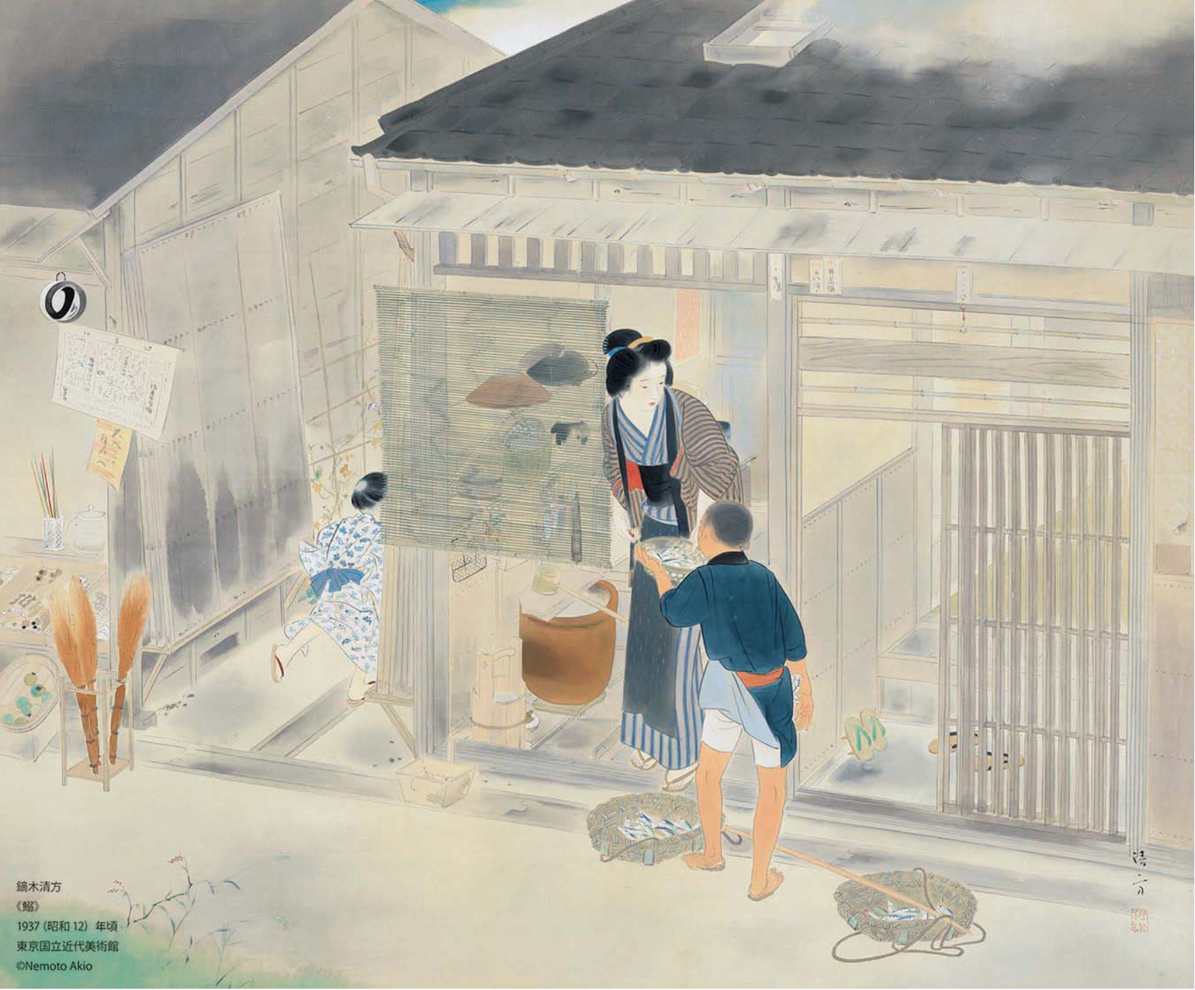 《沙丁魚》描寫東京佃島(今月島車站附近)的少年沿戶兜售沙丁魚的情景。鏑木清方描繪竹簾後方的廚房,可以從中感受他細膩描繪日常事物的堅持。這件作品在日本第一屆新文展中得到韓國國立中央博物館的收藏,應日本民眾要求下,鏑木清方另外繪製一件留在日本。