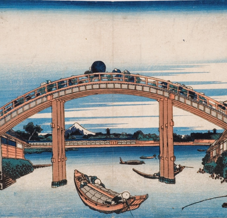 《築地明石町》裡,女人梳著當時流行的「夜會卷」髮髻,無內裏淺蔥色和服外披上黑羽織,在冷冽秋風裡回望明石町。那是鏑木清方年少時期經常遊歷的地方,作為外國人住宅區風情無限,也是鏑木清方心中的理想家園。然而在繪製時,已歷經關東大地震並進入昭和時期。背景的帆船輕輕淺淺,只留下牽牛花洋溢著新生之力,畫家在告別明治、大正時代繁華的同時,似乎也在告別告別自己的青春。