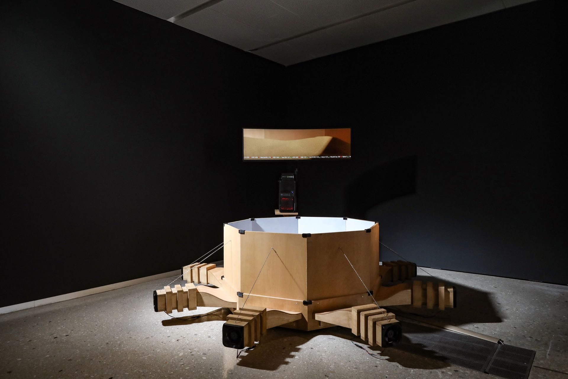 荷蘭藝術團體ARK的沉浸式裝置作品《 LAWKI-通道》(2021-至今)是一串線上有聲影片的合輯,該作品運用了AI和機器學習演算法串連影像,也讓影像的呈現根據觀眾的移動產生變化,觀眾在作品裝置四周遊走時,會體驗到無止盡的聲音與影像,回應日常生活時常迷失於全球化之下的過量資訊中。另一藝術家哈布希・阿曼德(Haseed Ahmed)的《股市天氣》(Stock Weather,2020),在展場現場會佈置實際的沙子和風扇,再利用數位技術取得紐約、東京和倫敦證券交易所的即時數據,並控制風扇吹向沙子,討論資本主義跟自然環境的關係。