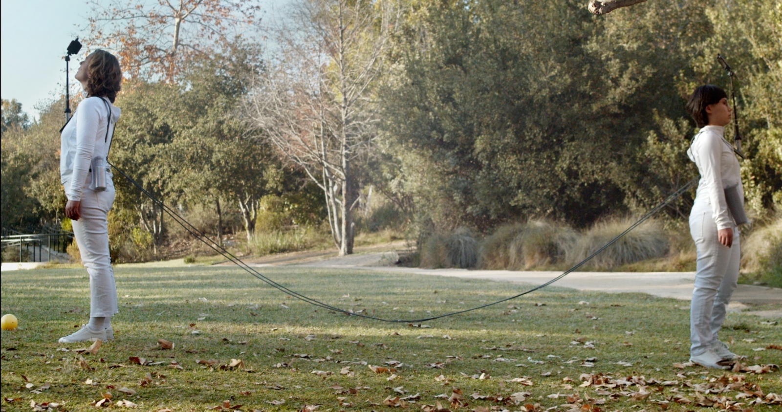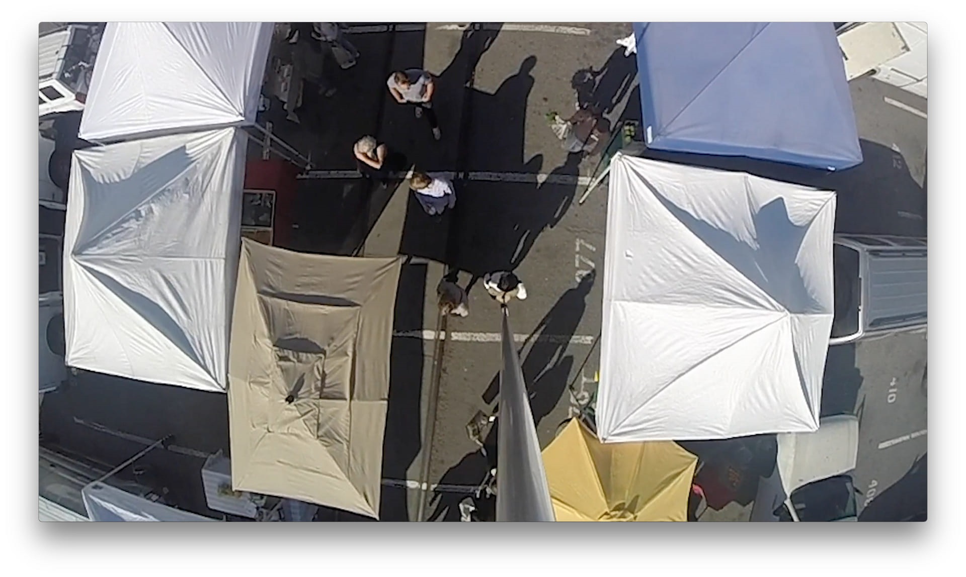 而劉桑祁的作品同樣探討衛星影像的深層意義,《走若飛》(tsáu ná pue)錄像內容是由自己揹著固定於長竿頂端的相機在洛杉磯街頭遊走,讓這顆「自製衛星」在高處錄製其行走路徑的景象,相較於一般衛星有著明確觀測目標與特定軌道在運行,他則重新找回個人意志所主導的觀看權。除了錄像內容以外,劉桑祁亦提供自製衛星的所需工具與製程說明圖,讓觀眾也能窺看異於平常的觀看角度與視覺經驗,存取極為私人的影像紀錄。