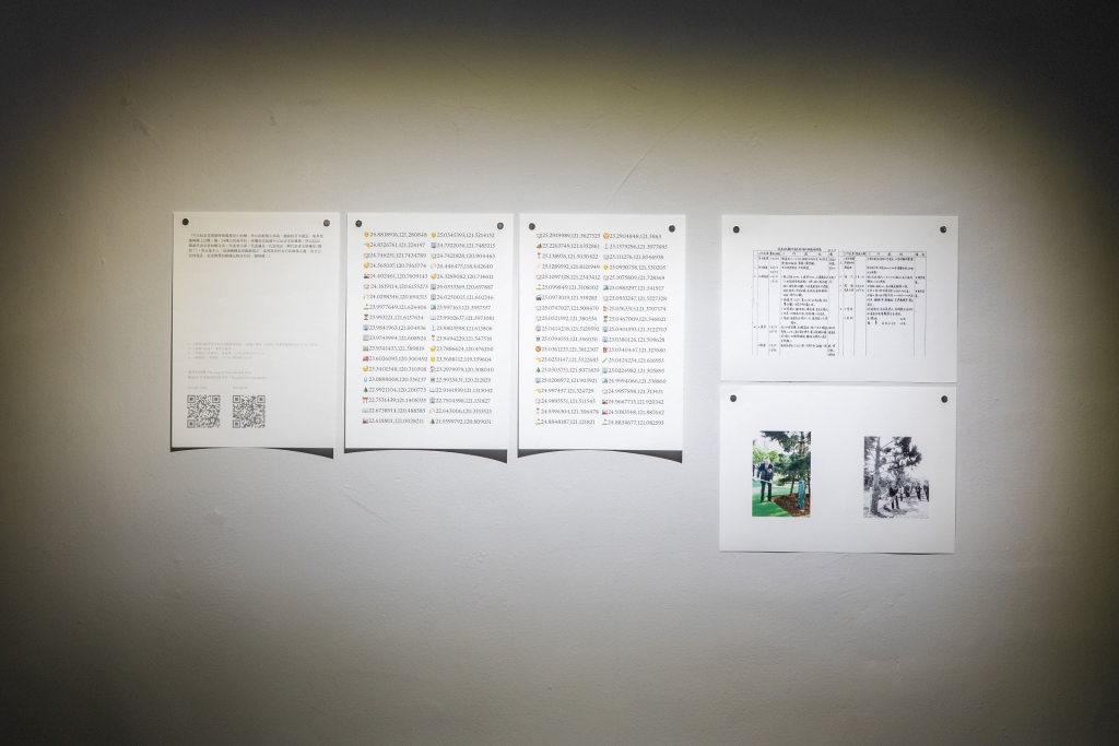郭哲希的《殖民地之杉》以影像輸出與文獻紀錄的形式呈現,在展覽當中乍看與網路數據、數位媒材的創作形式截然不同。然而,其作品也在相對不具科技感的情境下,引人思考在網路尚不普及的年代,資訊傳遞與觀念建置的手法為何?又該如何保持連結的關係?