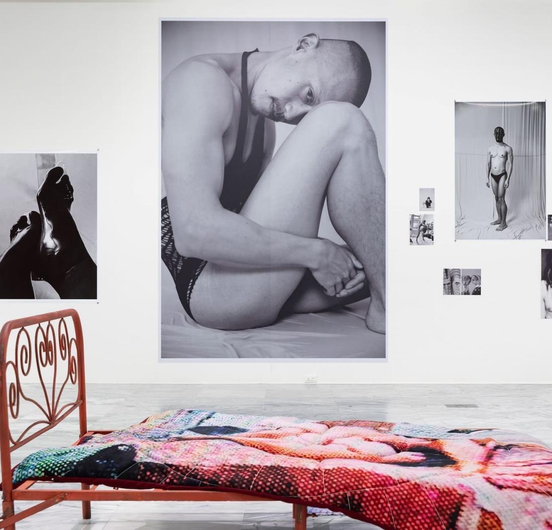 楊登棋從2011年開始思考的《父親的錄影帶》,在2019年獲得臺北美術獎首獎之後,又陸續在其他展覽中,發表了《父親的錄影帶__碧兒不談》與《複寫:認同__父親的錄影帶》等被視為3部曲的系列創作。在近日於臺北市立美術館(簡稱「北美館」)舉辦的個展「居家娛樂」展呈當中,這位攝影起家的創作者,藉著兩種展覽空間,表現酷兒在個人生命經驗所環繞的多重性與多樣性。兩造並置之間,呈顯某些事物在美學政治中的對比色,醒目地迴盪在兩個展間中。暗房與明室、讓我們坐著的「QK」(休憩 きゅうけい)沙發椅與讓人圍觀的床架、父親與母親的回憶、黑白與彩色攝影、在自我與他人之間的情慾經驗。又或者,如展覽論述中所提到的,讓「家」與「性」並置論述,隱私隨著性的探索誕生,成了那些在家裡難以開天窗說亮話的東西。為了維護家庭傳統的美好價值,不要把外面的「那些東西」帶回家。