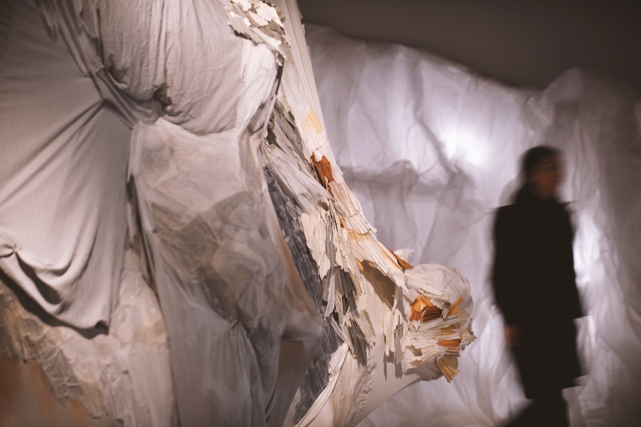 從結果來看,或許正如本次展名所寓示,「崎」歷經三次提案淬煉、籌備將近一年,找到「紙」之於迴廊空間最合適的展呈形式。在鳳嬌催化室與劇場服裝設計師李育昇、台北文化財保存研究所修復師林煥盛、以及瓦豆製作總監江佶洋的聯手打造下,以紙構築而成的山石幻境,體現出「紙」與「迴廊」空間的本質。而李依耘認為本次在北美館的策展經驗,除了為自身及團隊夥伴們帶來了啟發與成長,也是鳳嬌催化室成立至今的一項里程碑,「北美館這檔展覽也算是做一個階段性的統整,回到我們起初想要做的事情。」