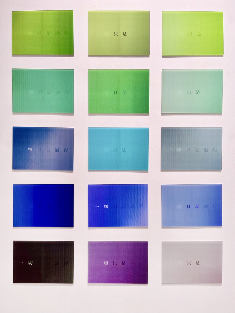 而對於自身,最貼合他近期心境寫照的又是什麼?蔡康永表示,儘管近三年來較少參與節目,但他始終覺得演藝圈的工作帶來很多樂趣與刺激,也是促成現在得以創作的能量之一,在展場中以多件小尺幅排列呈現的「一切只是過程」,亦像是在回望自己的人生階段。蔡康永認為偶然踏入演藝圈至今,相當感念一路以來受到許多保護與庇佑,「如果有機會的話,我希望現在所做的事情,也同樣能帶給這個世界更多溫暖。」