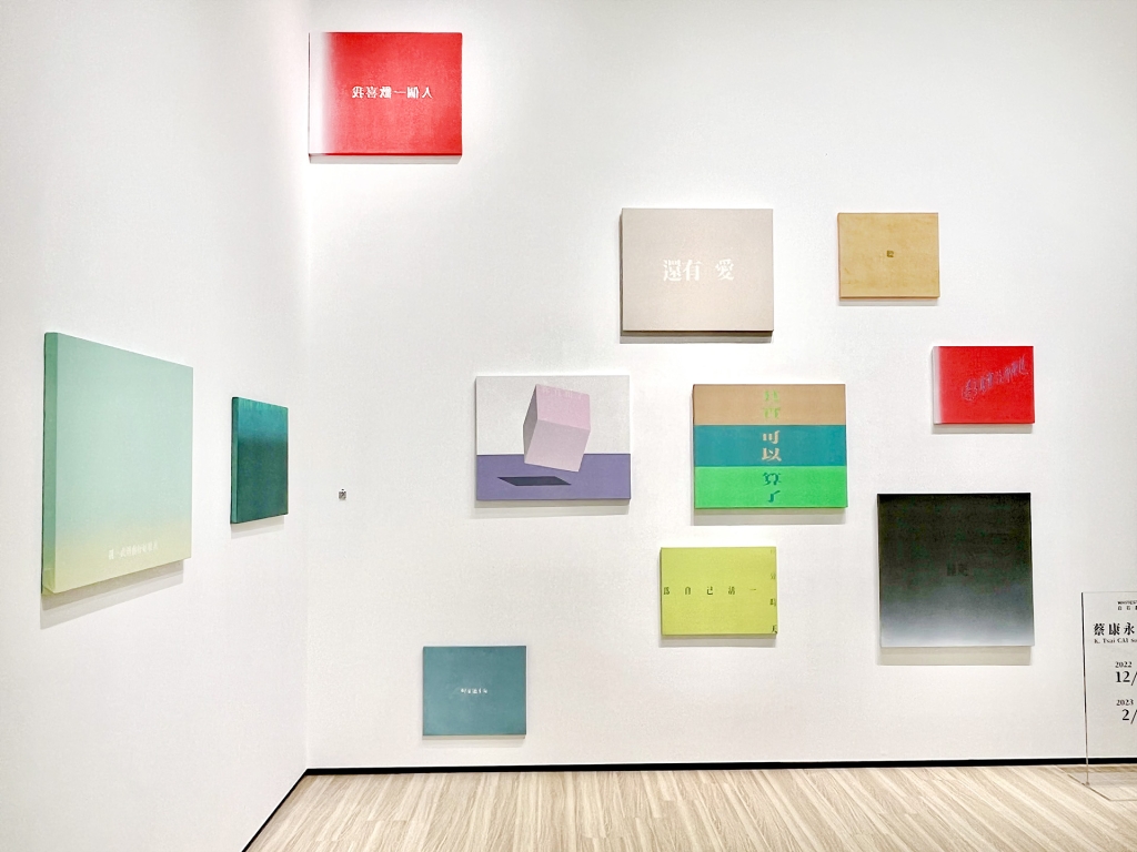 踏進白石畫廊台北呈現的蔡康永創作展「我一直替你好好收著」現場,甫於今(2022)年創作的七十多組作品,以隻字片語的疏密不一、高低錯落之狀態蔓延在牆面。