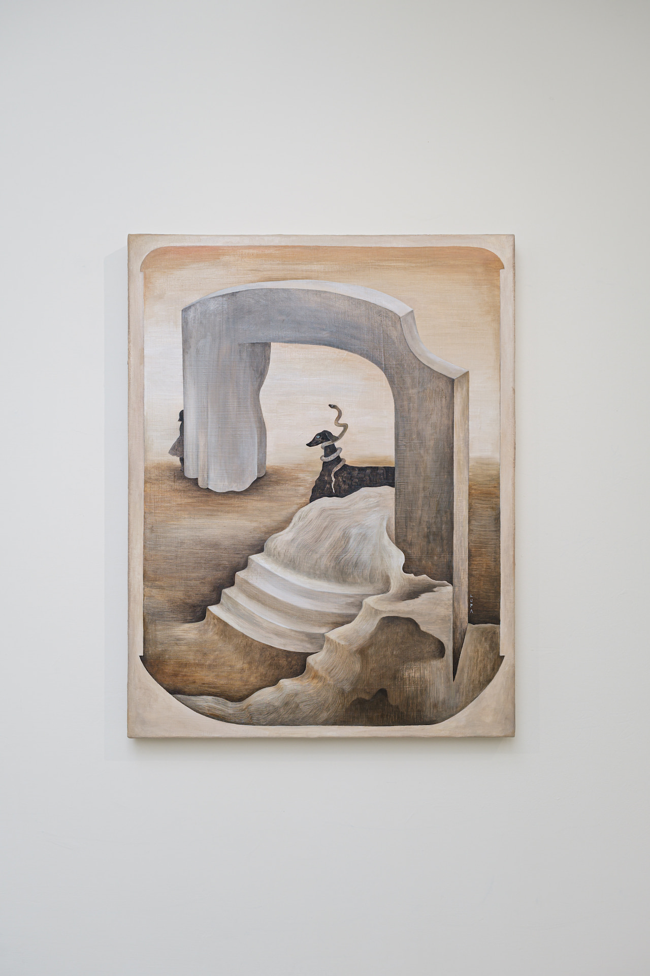揮別前次個展的鮮豔色彩、金箔與硬邊壓克力圖層,此次LUPA在Hiro Hiro Art Space舉辦的個展「人間勿語」,帶來了低彩度沙褐色調的油彩繪畫與手捏陶作品。敘事與故事在每一件作品的命名中若隱若現,而較不以直接明確的符號與圖像言說。這些故事與形象被藝術家以平面繪畫描繪、又或者以立體陶土捏塑,燒製成一個個具有素樸手感、表現原始之力的作品。在由油彩顏料所描繪的繪畫性中,則保留了許多引人神往的敘事空間。其中最引人注意的,就是在不同畫作之間經營的緞帶式筆觸。