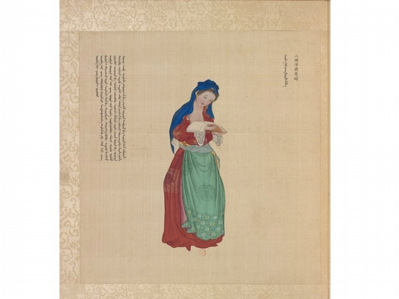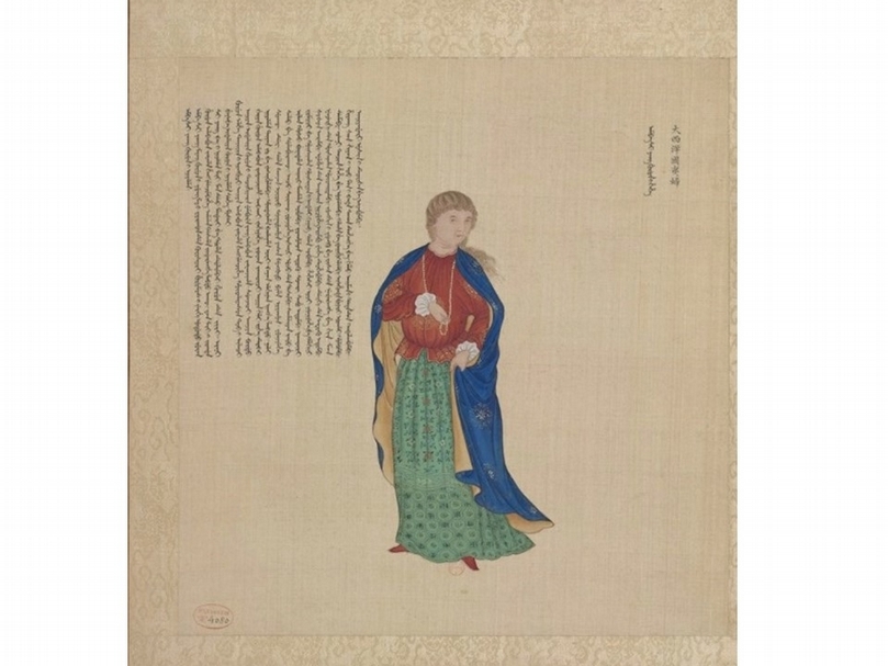 《皇清職貢圖》冊頁本中的「大西洋國夷婦」,法國國家圖書館藏。(© Gallica)