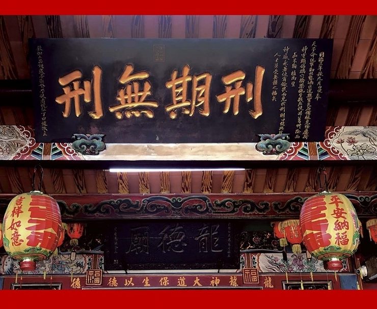 年少撒網捕魚的洪通,很愛畫魚,也愛畫鳥、雞與孔雀。南鯤鯓代天府的山門、建築、束隨、員光、雀替、龍柱、藻井、彩繪、斗栱、剪黏、佛像、籤詩等,藉由筆尖,躍然佔據畫面各角落,持續延展。層次分明的構圖,密如漁網的畫面,色彩鮮麗的生命樹,巧妙留白,開敞抒懷,足見創作時無窮無盡的爆發力、愉悅與堅持。尤其,見字成文,見篆成蛇,見草書成蚯蚓,頗有倉頡之才。