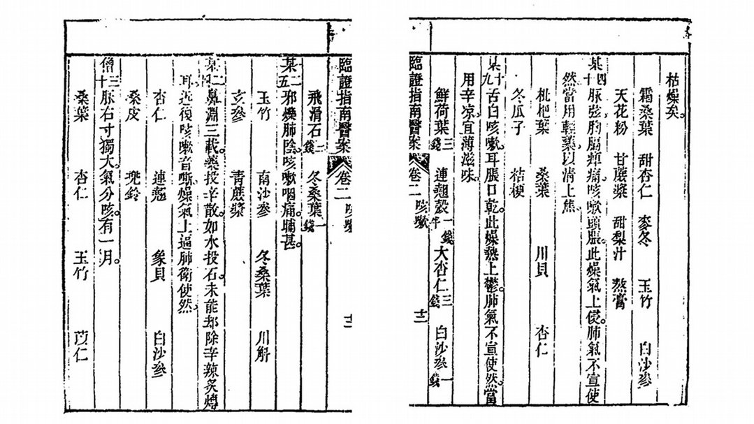乾隆二十九年(1764)《臨證指南醫案》是清代流傳廣泛、影響深遠的一部中醫醫案專著,原撰者為清代名醫葉天士(1667-1747),由其門人華岫雲等輯錄整理而成。該書共十卷。卷一至卷八以內科雜病醫案為主,並附外科及五官科醫案,卷九和卷十分別為婦科與兒科醫案。書中序列89門,述證86種,每門以病證為標目,序列其經治醫案,並有論述該門證治大要的附論一篇,由葉氏門人分別執筆撰成,言簡意賅,切中肯綮,尤其有關溫熱病醫案的記載,多成為後世醫家編寫溫病專著的藍本。