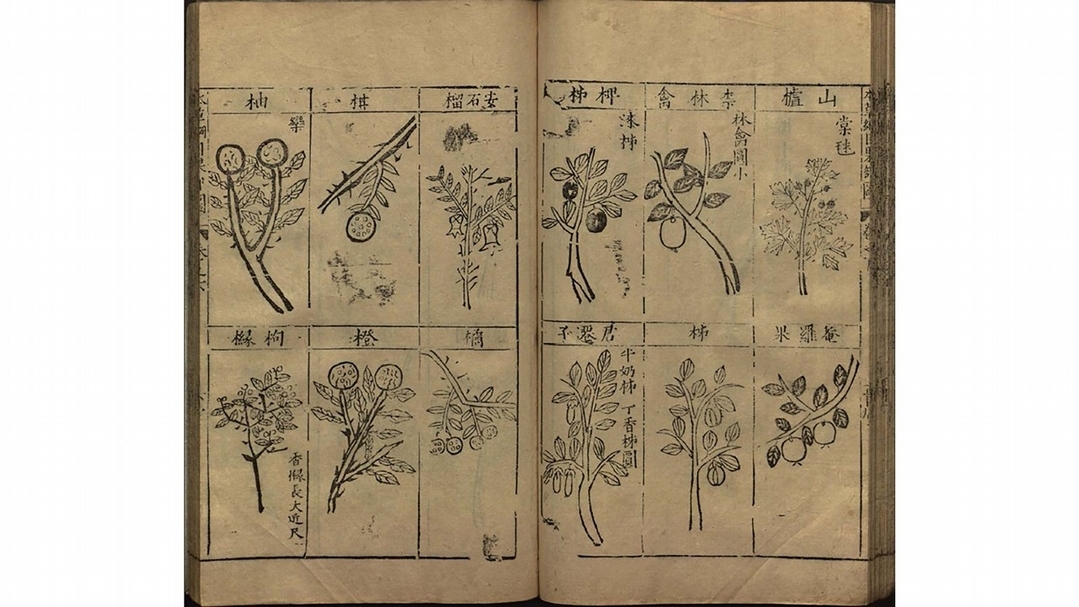 《本草綱目》原刻本上卷題銜「階文林郎蓬溪知縣男李建中輯,府學生男李建元圖,州學生孫李樹宗校」,下卷則為李建木圖,可知插圖是李時珍之子李建元和李建木所繪。由於他們並非專業畫家,因此插圖難免失真。以「柰林禽(檎)」的圖像為例,光看插圖而不對照文字,其實很難知道這究竟是何物。「林檎」其實就是我們熟悉的蘋果,《本草綱目》載:「時珍曰:案洪玉父云此果味甘,能來眾禽於林,故有林檎、來禽之名。」因林檎成熟之後會散發芳香,吸引林中的禽鳥,所以又叫來禽。「柰」(讀音同「奈」)則是蘋果的古名。柰、林檎雖然都是蘋果,但林檎的果實比柰小而圓。《本草綱目》載,蘋果有諸多療效,特別是有益於腸胃消化道健康。「柰」可補中焦諸不足氣,和脾。治猝食飽氣壅不通者,搗汁服,益心氣,耐飢;「林檎」主治下氣消痰,治霍亂肚痛。消渴者,宜食之。療水穀痢(脾胃虛弱不能消化所致的痢疾)、泄精與小兒閃癖(頭髮豎立、發黃、全身瘦弱)等。