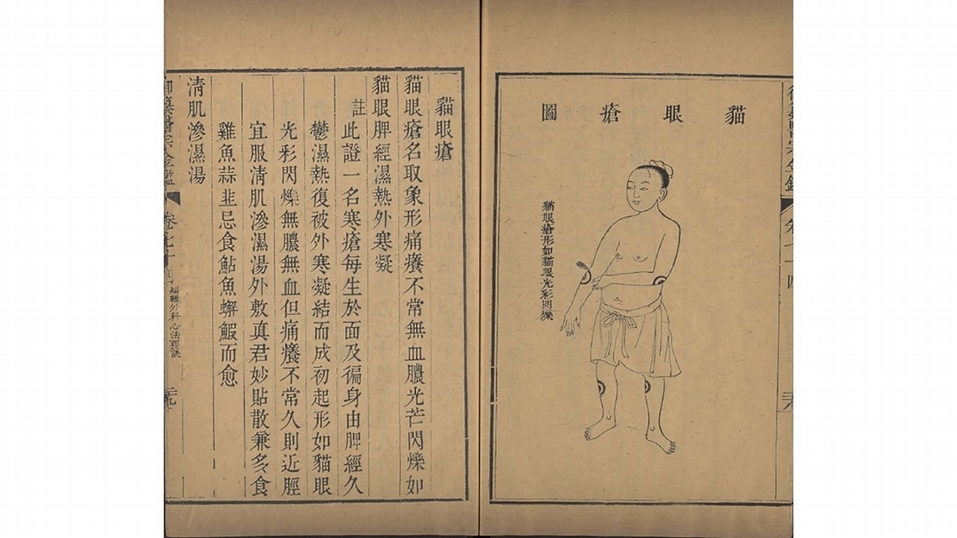 清吳謙、劉裕鐸《御纂醫宗金鑑》之「貓眼瘡」,乾隆七年(1742)武英殿刊本,國立故宮博物院藏。(國立故宮博物院提供)