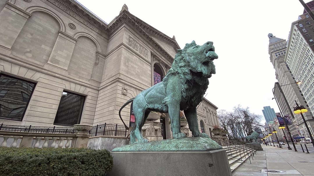 芝加哥藝術博物館外觀與北側銅獅塑像。 攝影/Raed Mansour(Flickr/CC BY 2.0)。