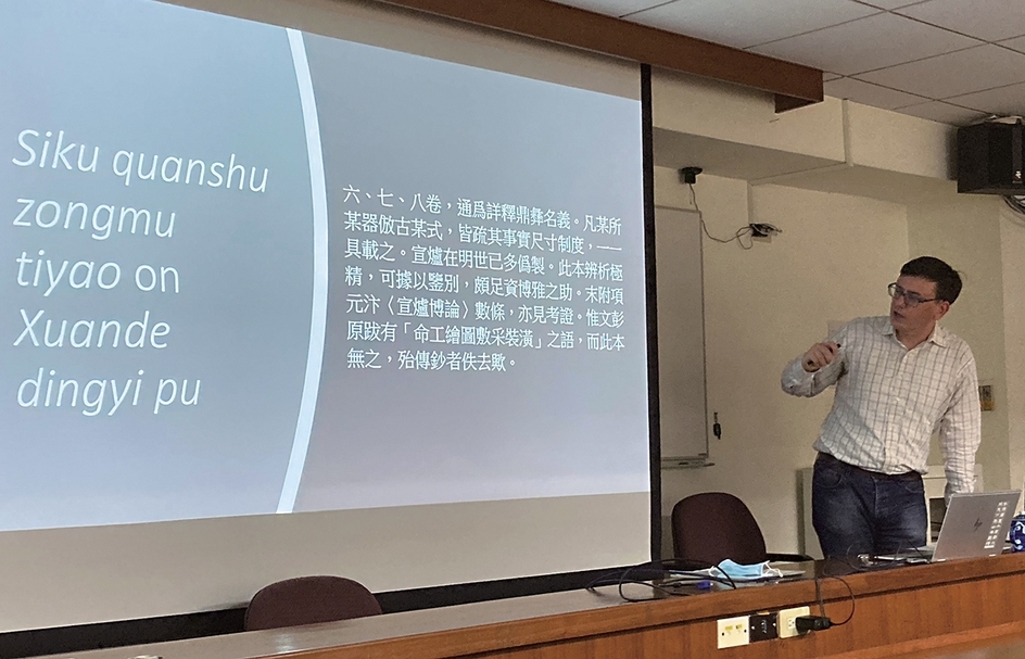 阮思德於中研院史語所發表「紙上的宣德爐:文檔、文獻與文物」演說。(張嘉倫提供)