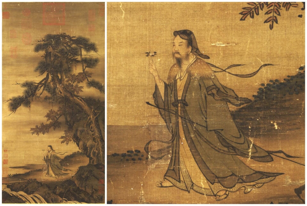 被世人譽為「隱逸詩人之宗」的陶淵明(約365–427),言語中散發著淡泊名利、固窮守節的高潔襟懷。以詩人兼隱士的身份,塑造「採菊東籬下,悠然見南山」自然豁達的生命觀,令天下人心神嚮往。晉宋1500年以來,他的詩文廣為流傳,甚至以陶淵明為題材創作的隱士畫像、敘事畫等作品也宣揚到境外東亞漢文化圈,在畫史留下深刻印記。古人畫筆下的陶淵明形象大致分可為兩種類型,一種是表現東晉詩人放浪形骸的醉態;一種為瀟灑飄逸的隱士形象,或持菊花自賞,或策杖於山林溪澗。人物頭上戴的「葛巾」,更被視為陶淵明隱士形象的標記。