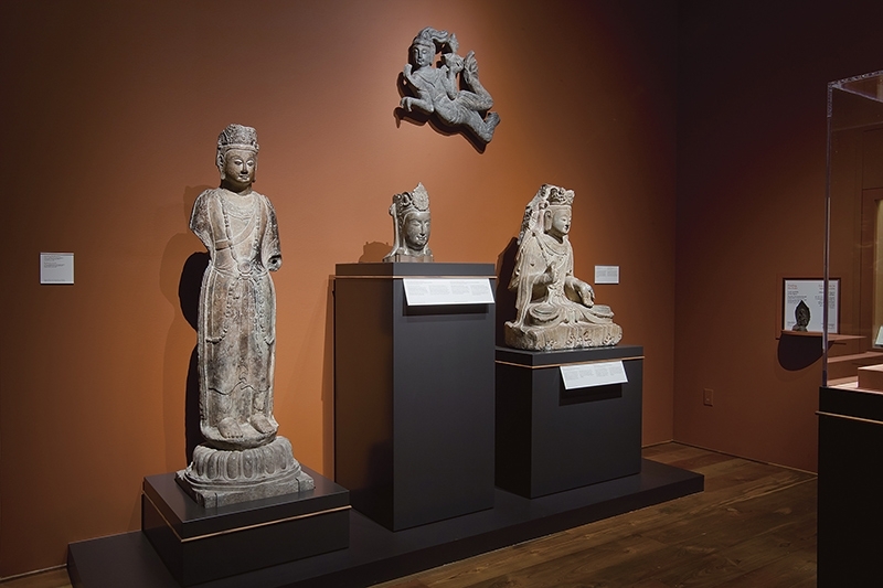 中國藝術典藏中著名的作品之一為北齊時期響堂山石窟的佛教造像,曾於2010至2011年由芝加哥大學斯馬特美術館(Smart Museum of Art)與賽克勒藝廊(Arthur M. Sackler Gallery)策劃的巡迴展中亮相。(註2)這些造像自2012年起便陳設於展出佛教藝術的第7陳列室(圖5)。諸如商代青銅器、周代與漢代玉器以及唐三彩等古文物,也都陳列於常設展廳。